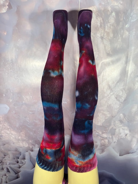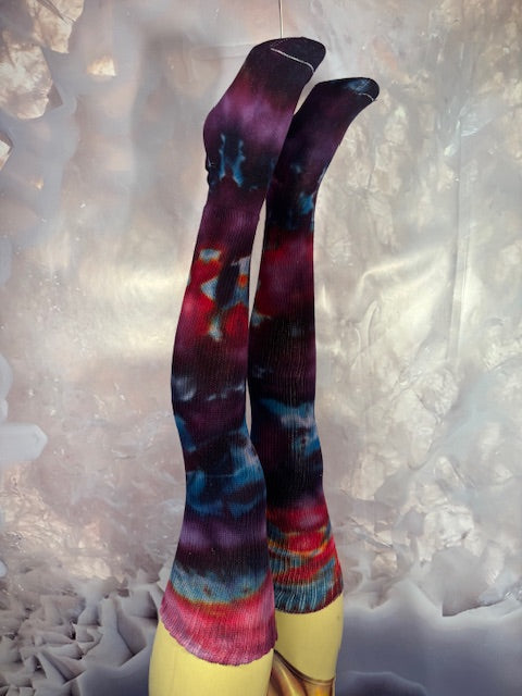 Let's be honest ~ These socks are epic, they keep you warm, you can put them on your arms and become an octopus, there is so much...and yes...they stay up and fit all leg sizes.