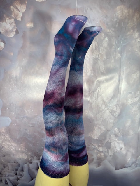 Let's be honest ~ These socks are epic, they keep you warm, you can put them on your arms and become an octopus, there is so much...and yes...they stay up and fit all leg sizes.