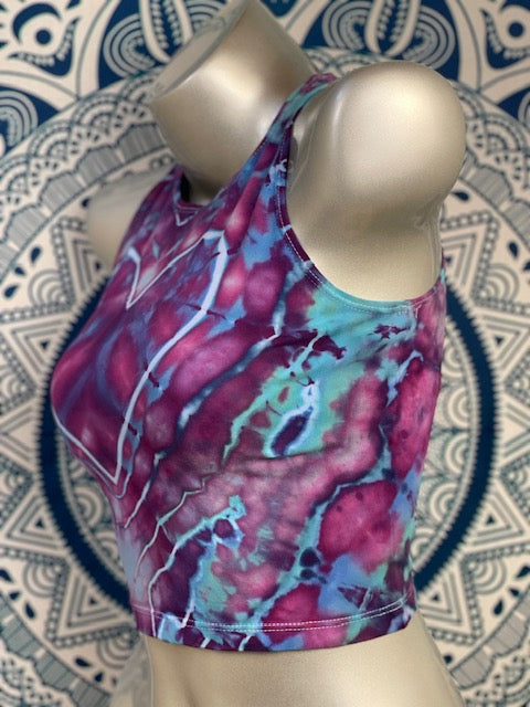 Classic American Apparel Crop tank tie dyed by Mary Beth Osburn out of Colorado. We Love these earthy rainbow AWESOMENESS. They just speak to us!