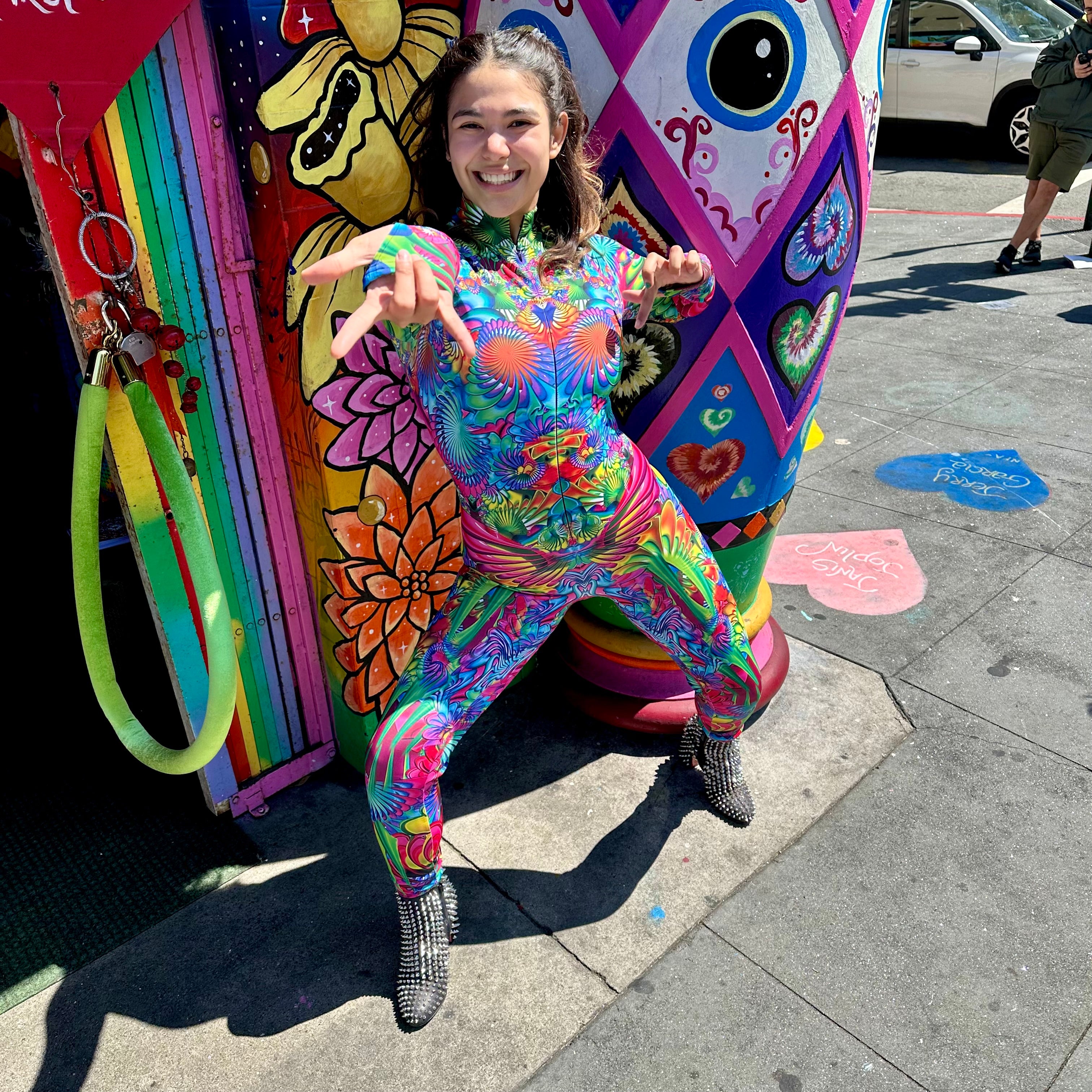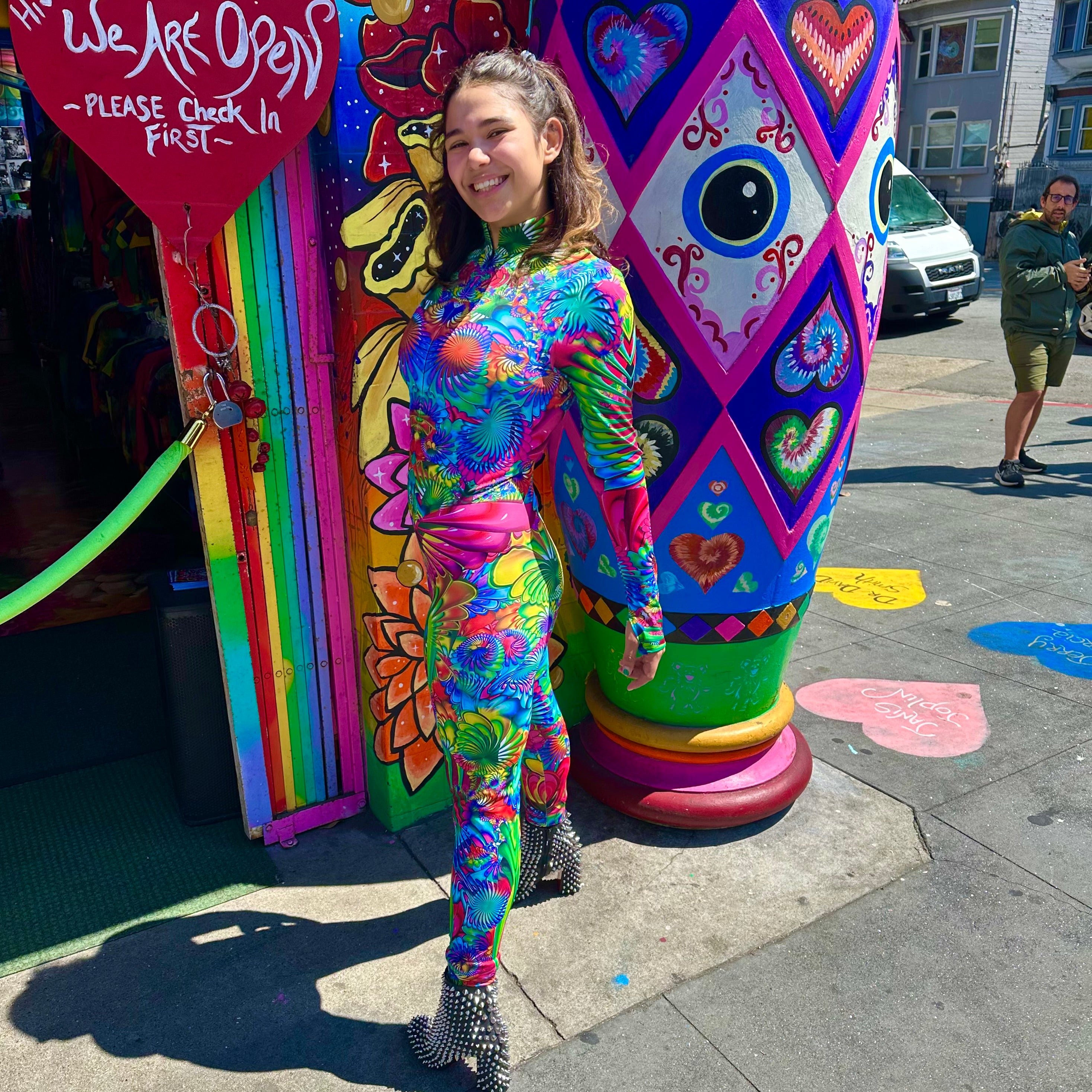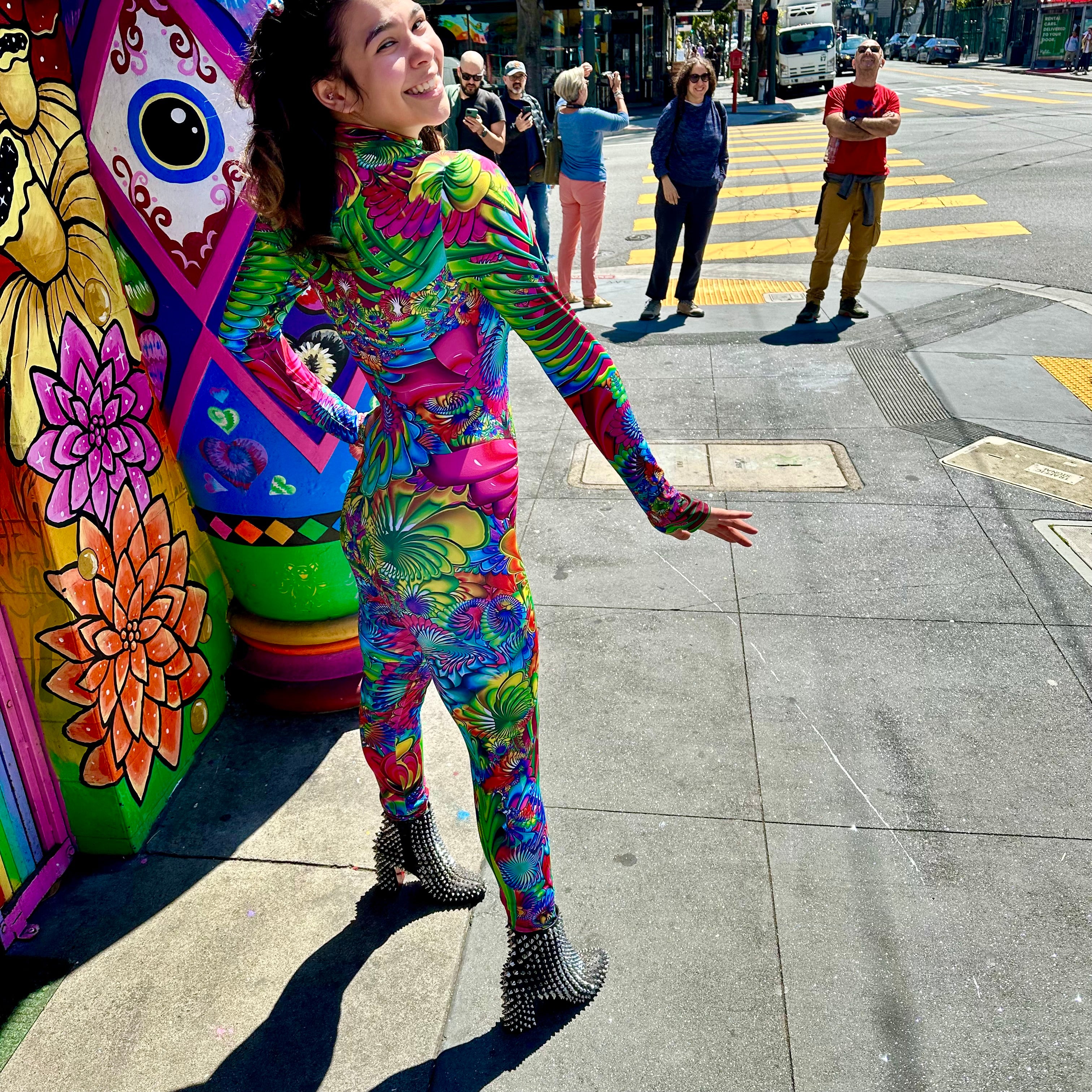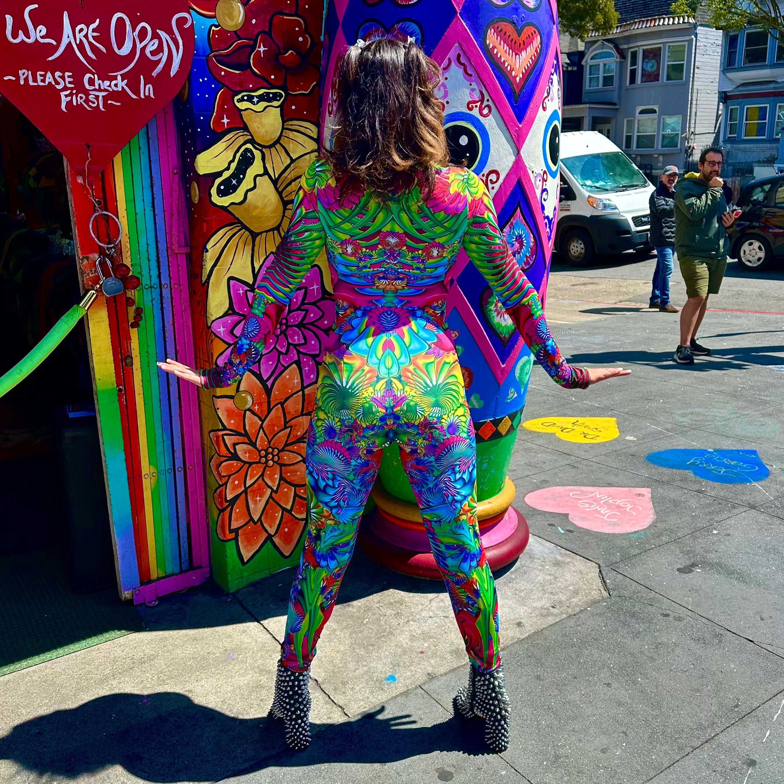 The design features a body con fit with long sleeves, a mock neckline and a sturdy zipper neatly hidden in the front.