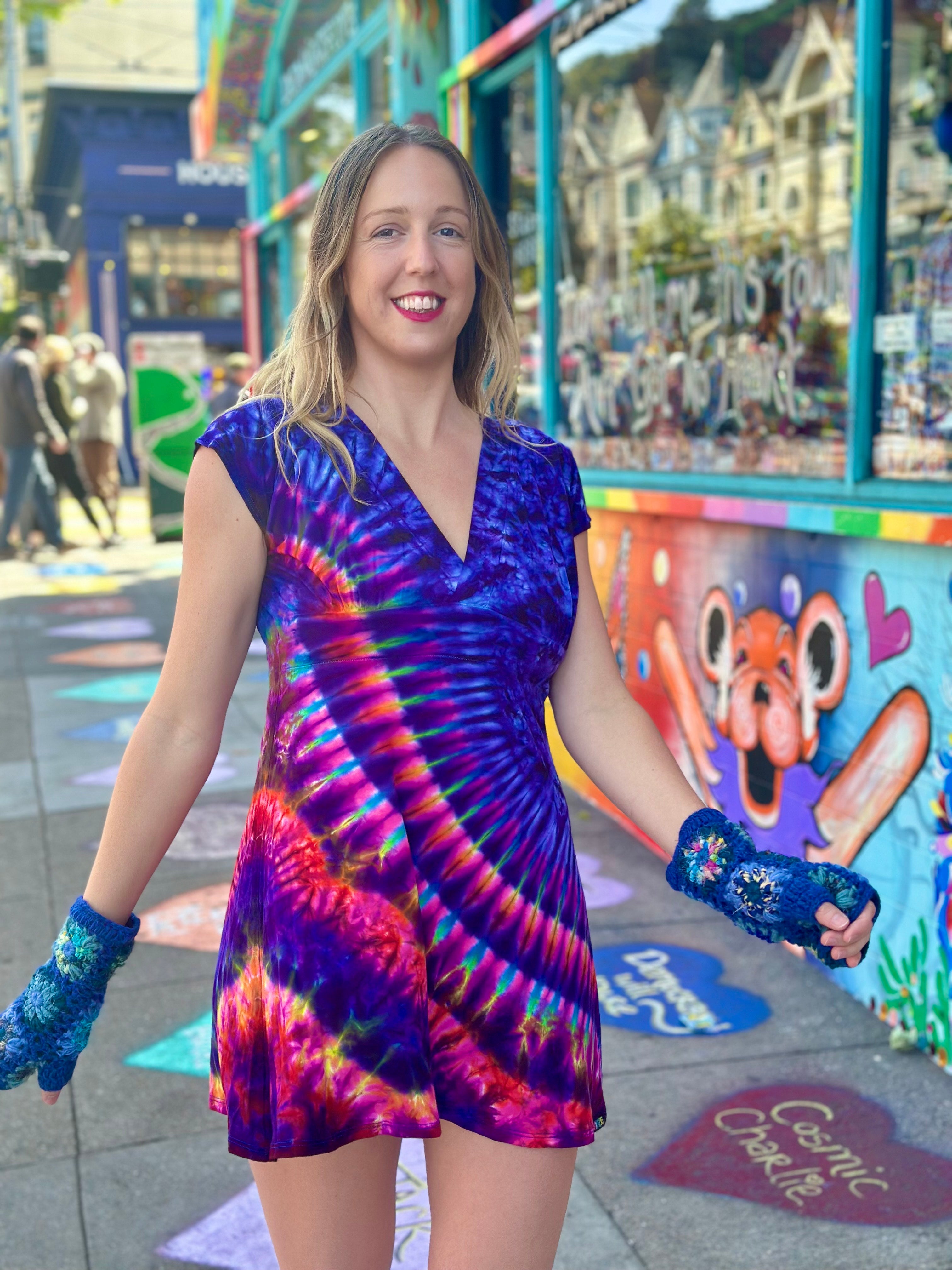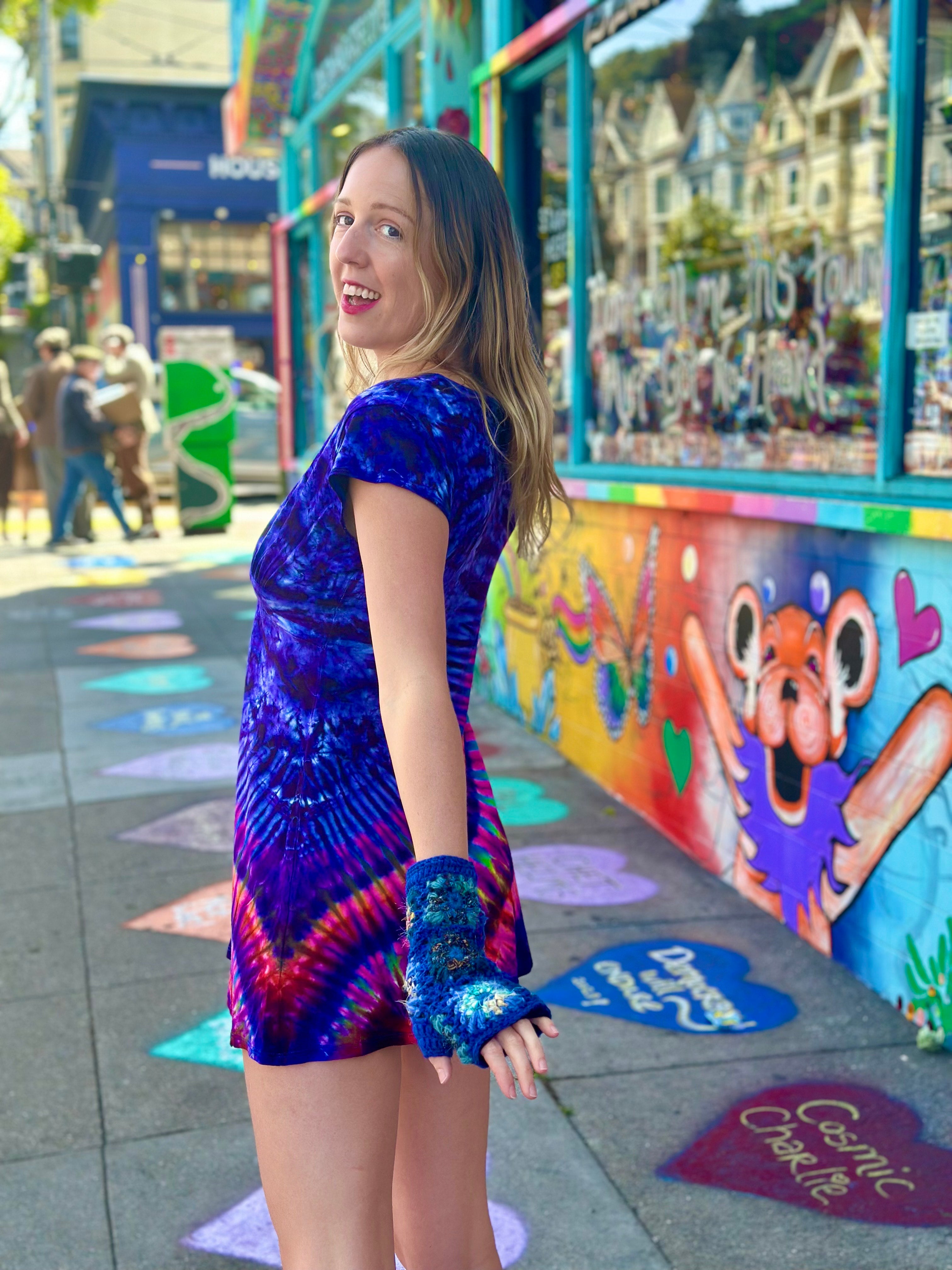 Done By Barefoot Lazer Tiedye!  Josh of Barefoot has been dying for the shop for almost 13 years! We love your saturated color palate!