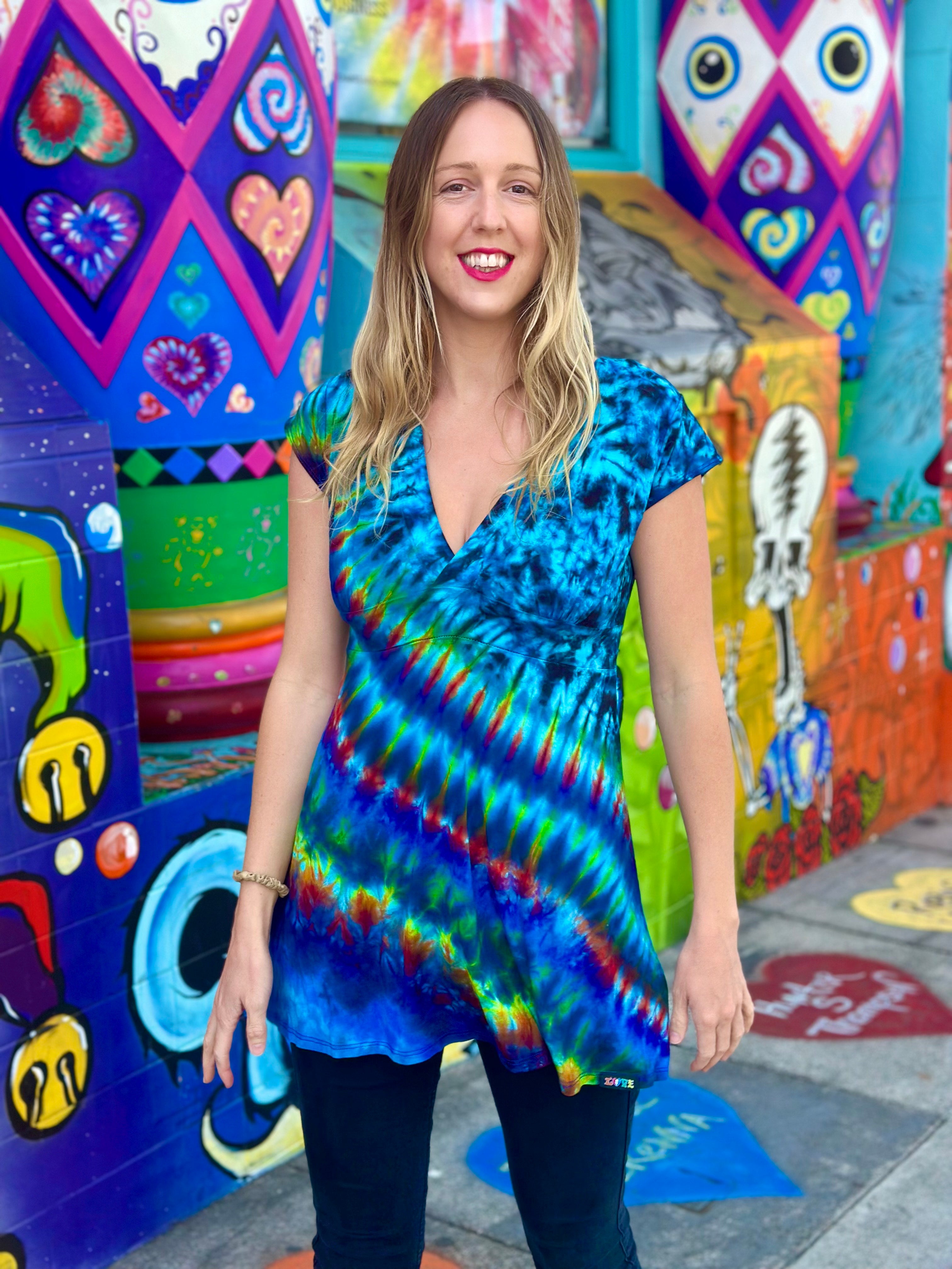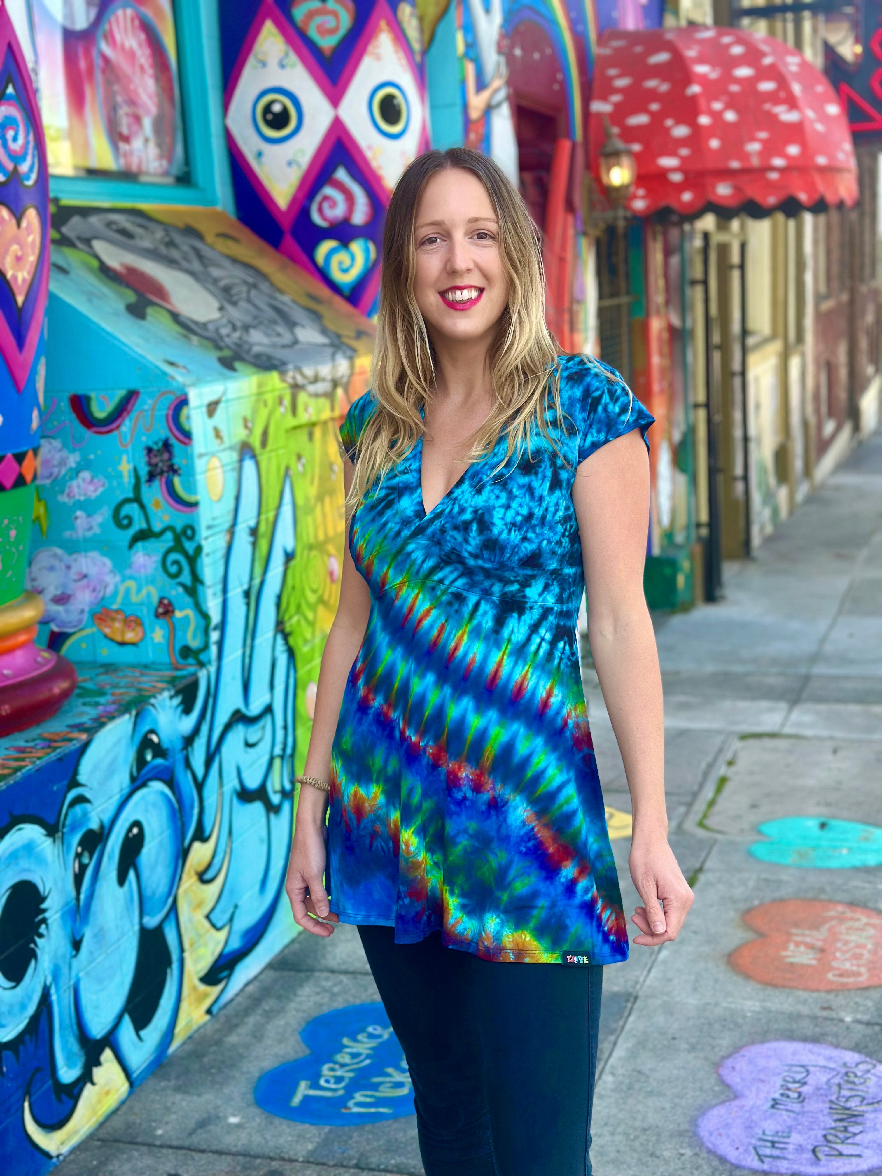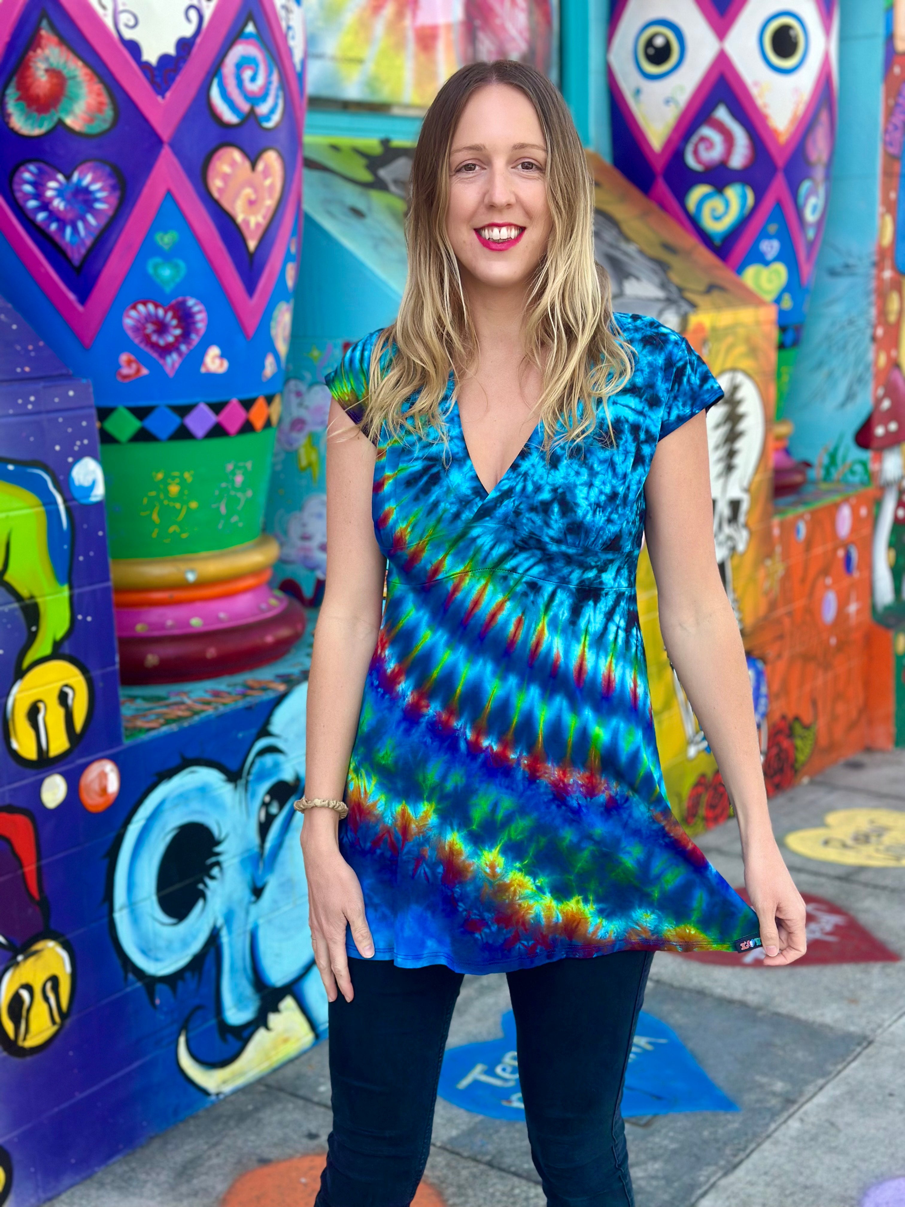 Tiedye placement may vary from size to size.