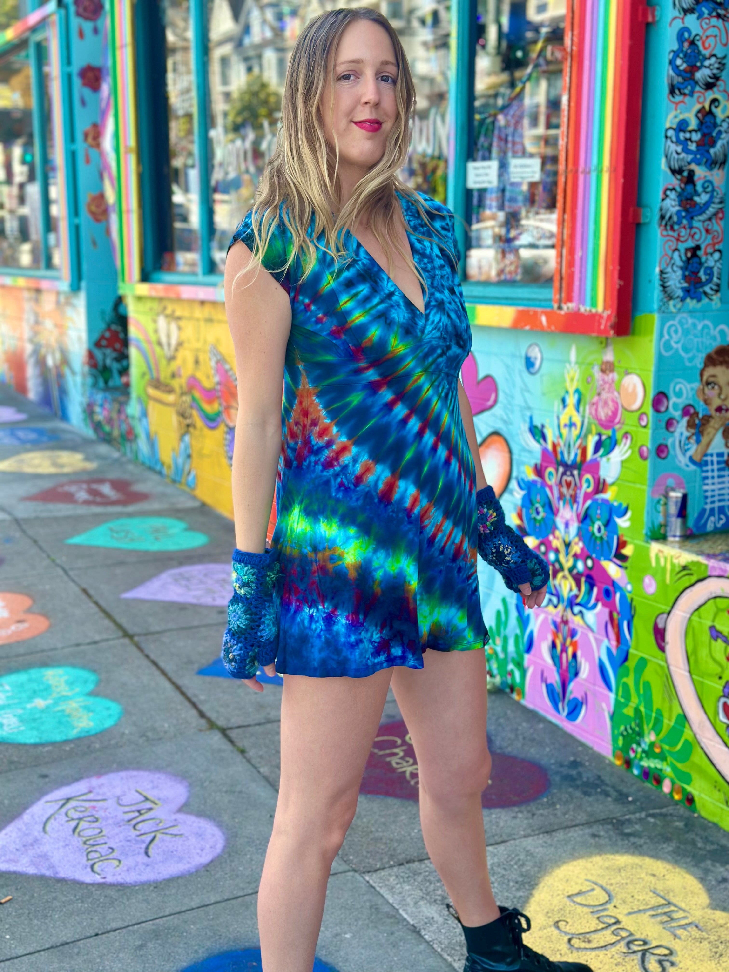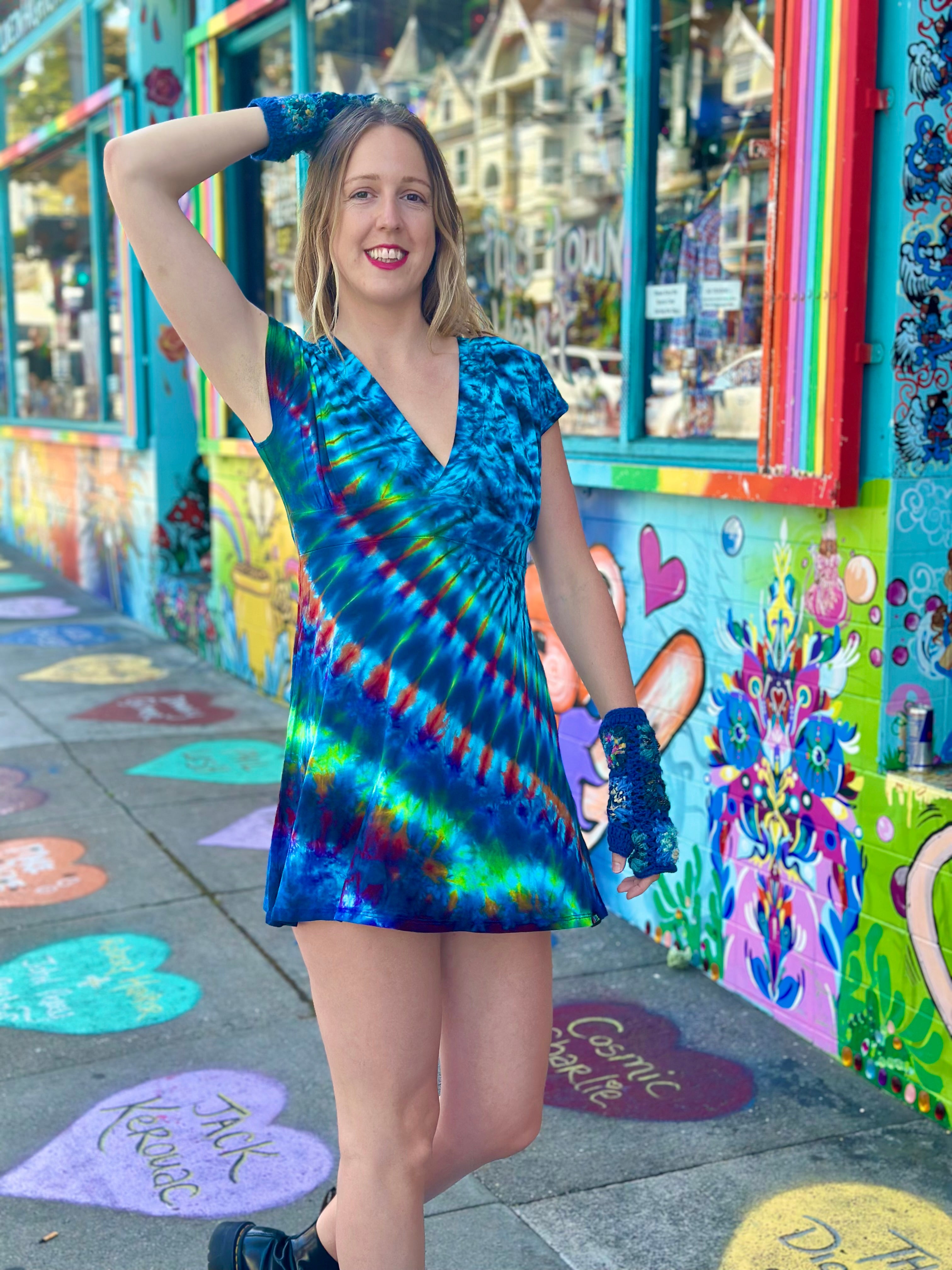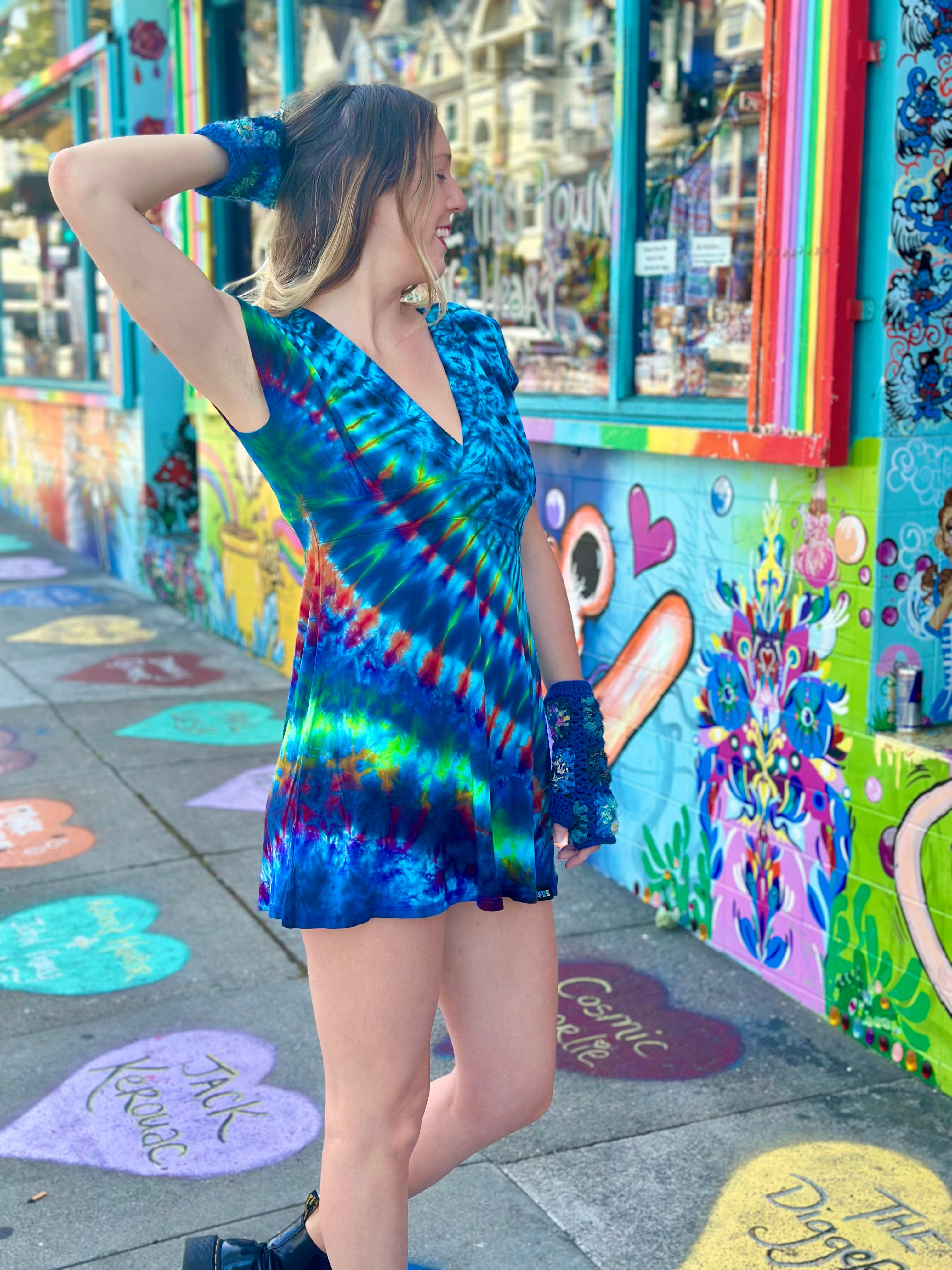 Tiedye placement may vary from size to size.