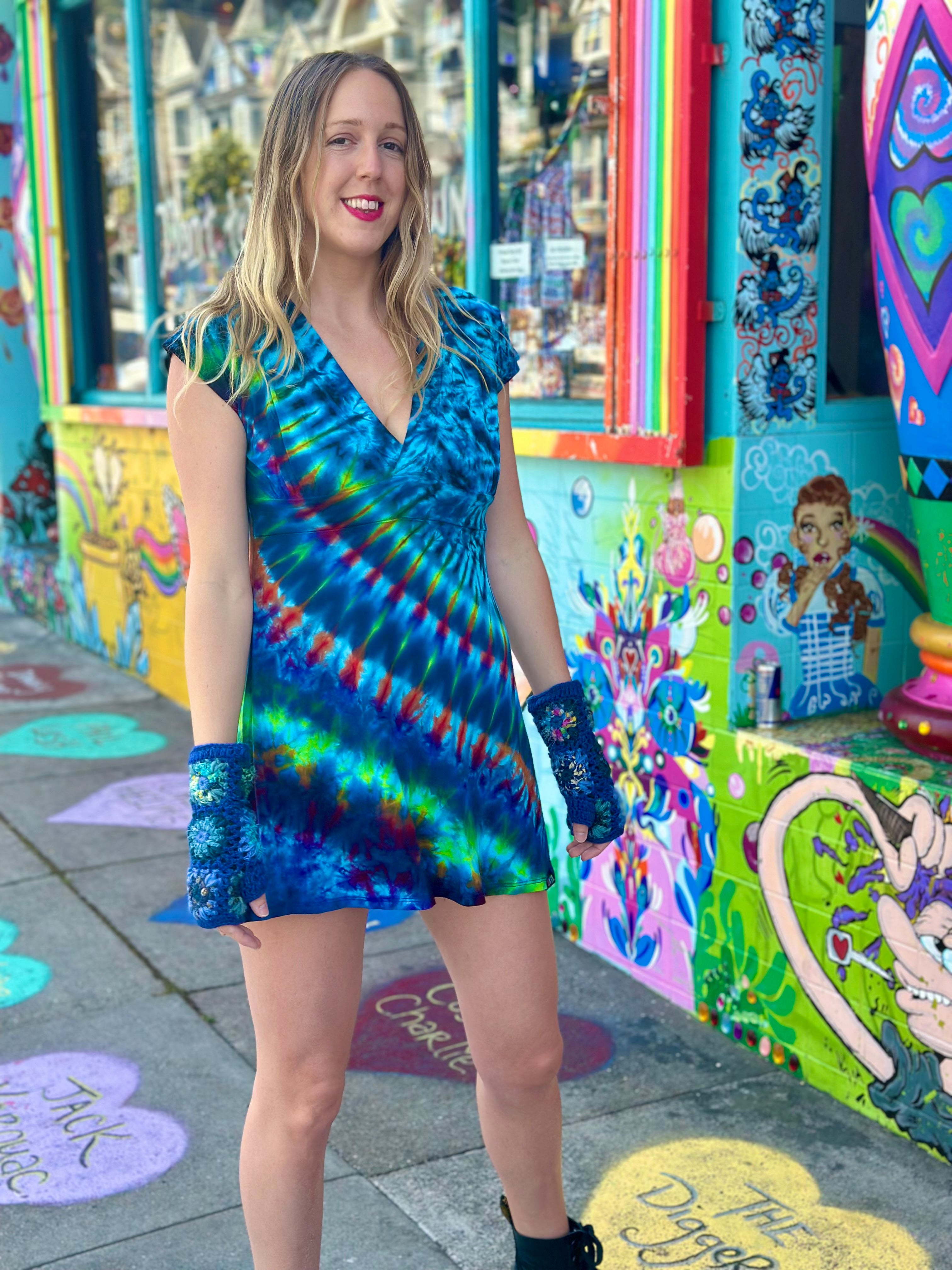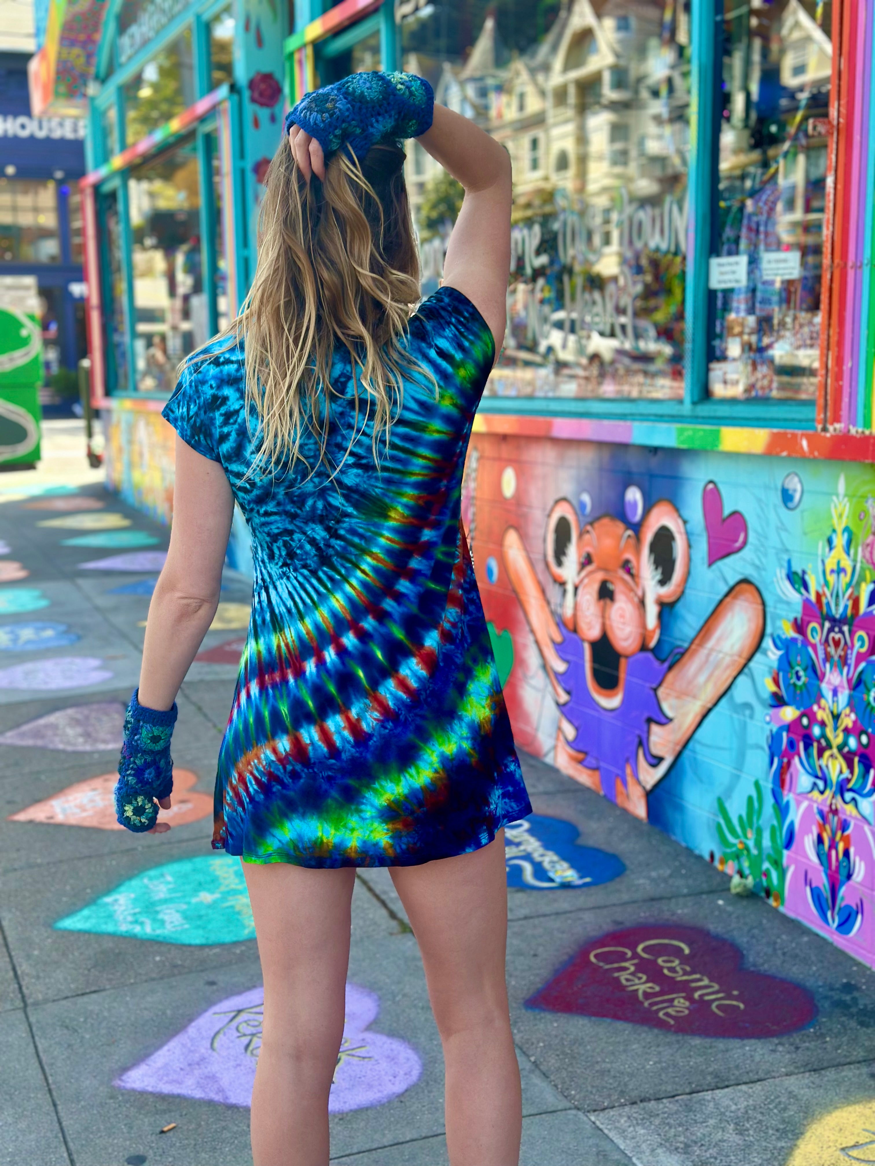 Done By Barefoot Lazer Tiedye! Josh of Barefoot has been dying for the shop for almost 13 years! We love your saturated color palate!
