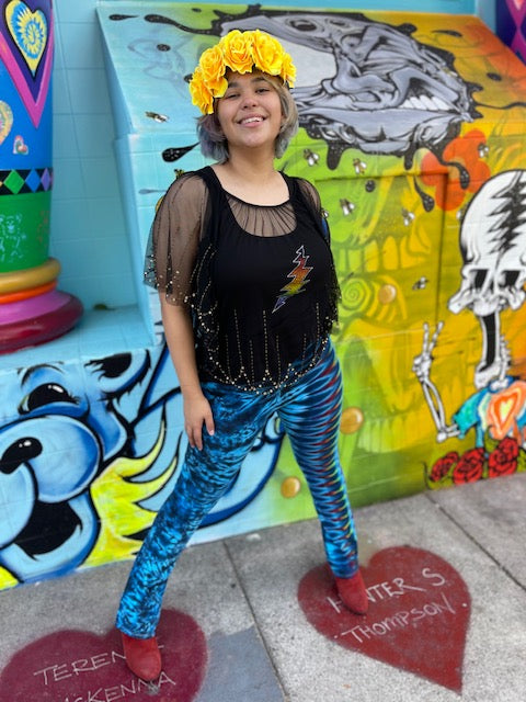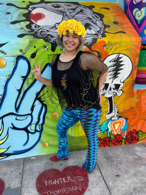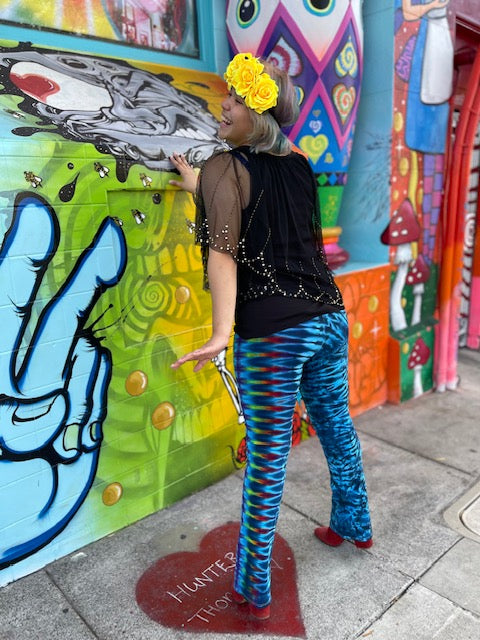 These Magical Yoga Pants are American Made Royal Apparel Leggings that we send up to the EPIC Josh Wojcik of Barefoot Lazer Tie dye in Eugene Oregon!
