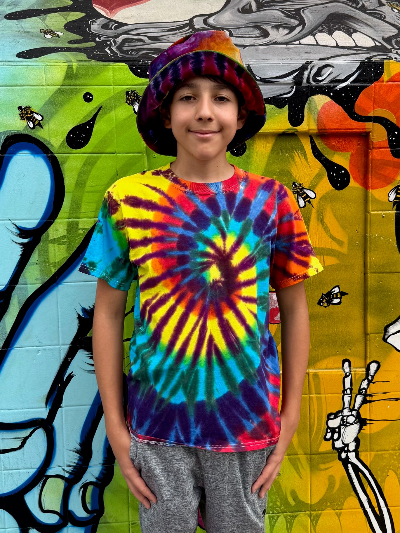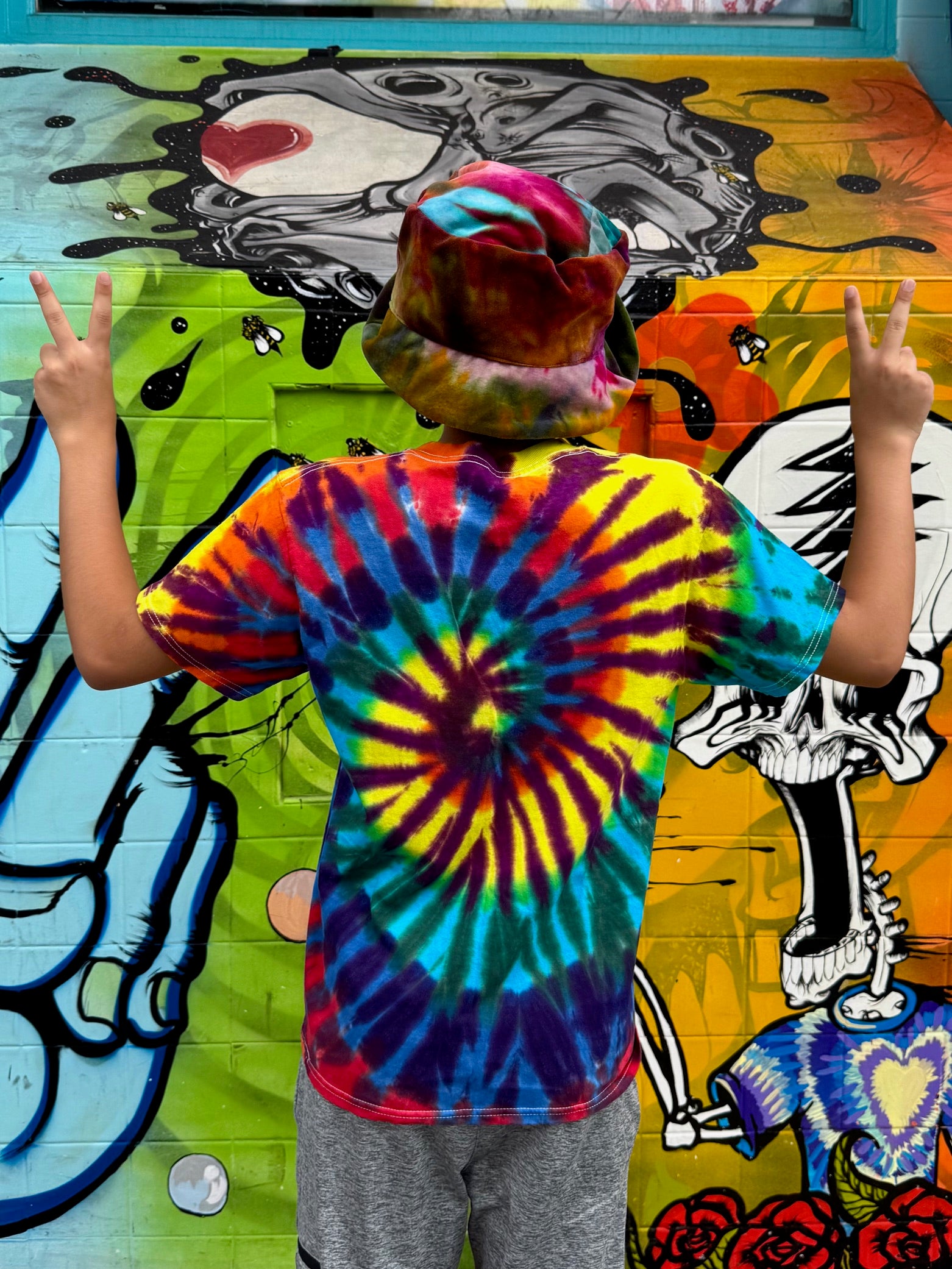 These magical shirts were tie dyed by Gary McMillan of Cosmic Cotton, located in Vermont.  Gary has been tiedying since 1983 and you can tell!!  We love this Classic Tiedye!