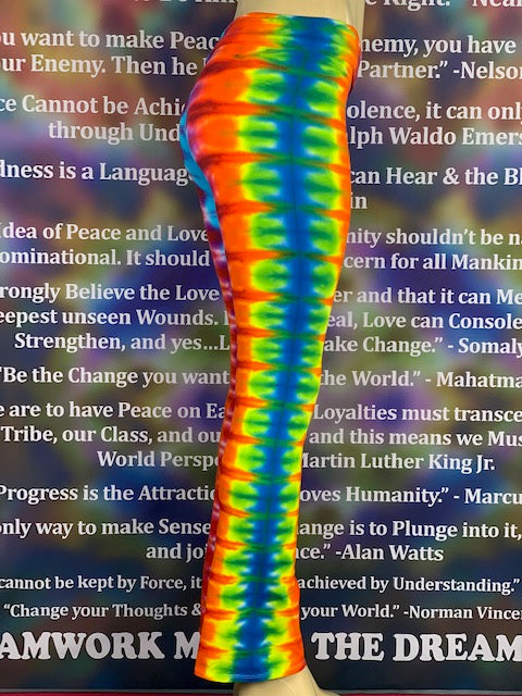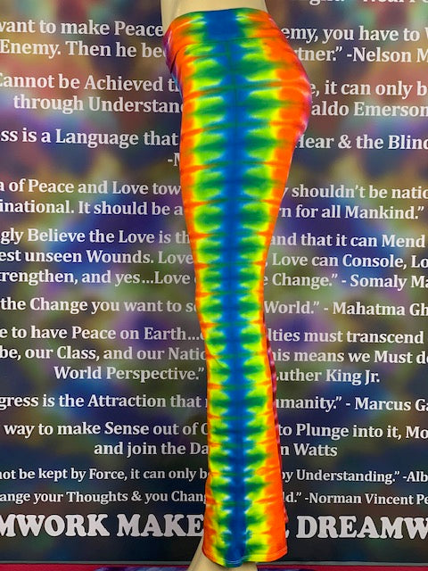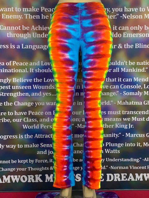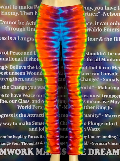 Royal Apparel branded USA made yoga pants with fold over waist.  Tiedyed by Jolene & Bobby of Home Town Tiedye in Idaho.