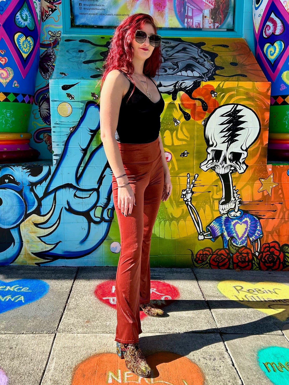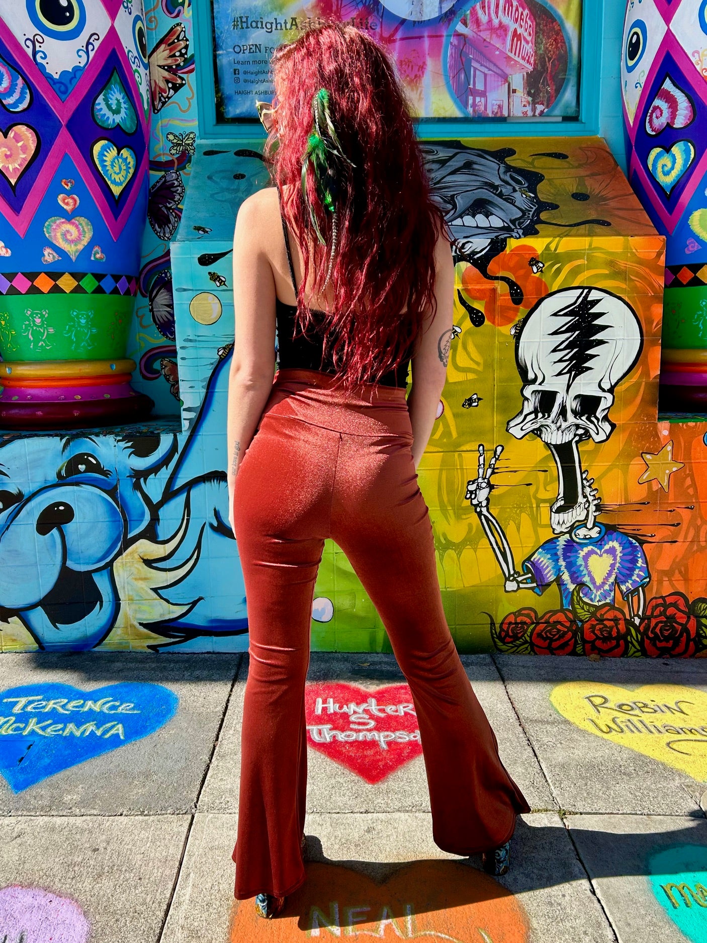 Waist can be worn high, or lined waistband can fold for a lower waist.