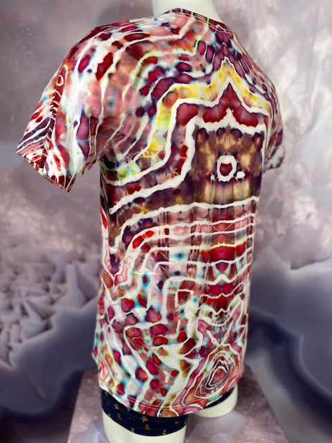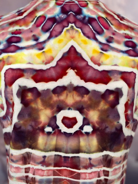 We hope you enjoy meeting Happy Hemp Head aka Shandy & Shades from Camdenton,  Missouri.  Mostly done with ice dying, they also do some hand painted and stitching work which you can see in their pieces.
