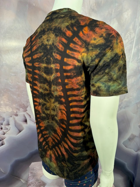 He starts with a black shirt, then bleaches it, then colors it, then ships it to us.  This shirt has traveled far and wide to find you...but here it comes!