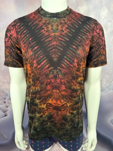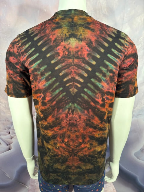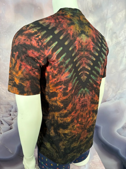 He starts with a black shirt, then bleaches it, then colors it, then ships it to us. This shirt has traveled far and wide to find you...but here it comes!