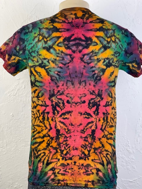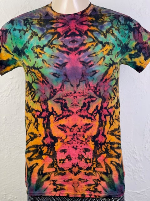 He starts with a black shirt, then bleaches it, then colors it, then ships it to us. This shirt has traveled far and wide to find you...but here it comes!