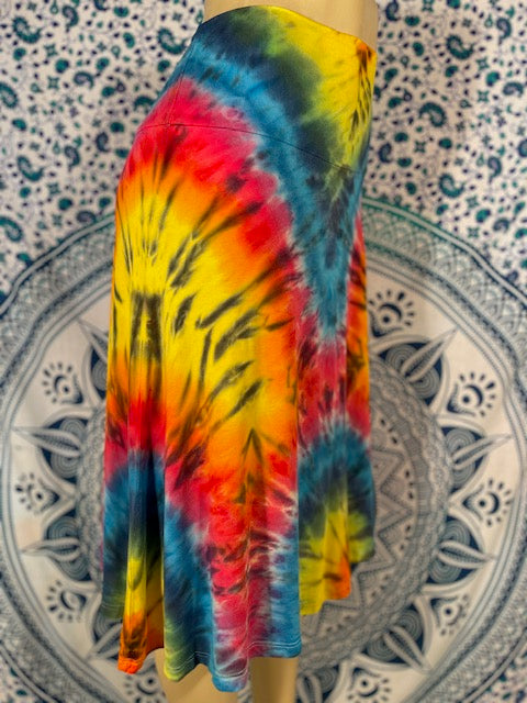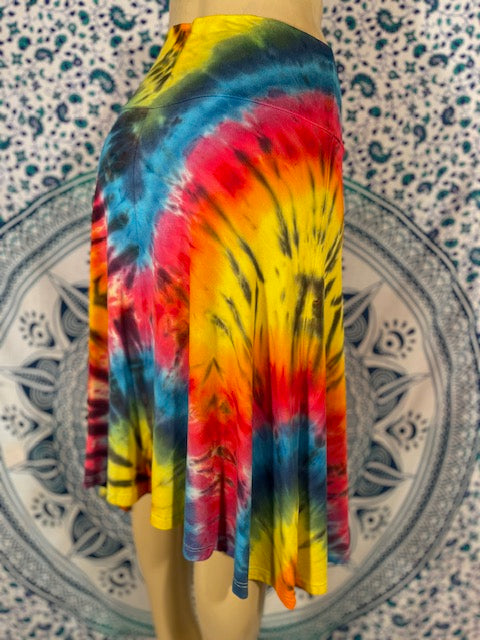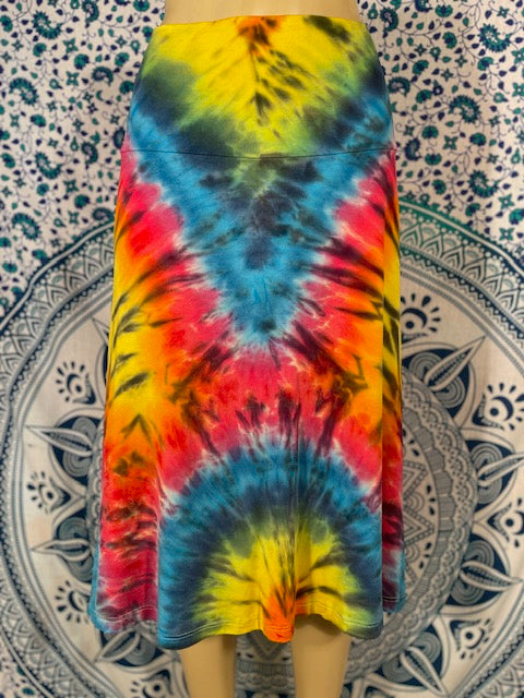 Soft and flowing, feel the wind in the magical cotton - rayon blend skirt. Cut and Sewn in California and tiedyed by the mother/daughter Duo of KKtiedyeCo. of Lodi. California...these skirts are perfect.