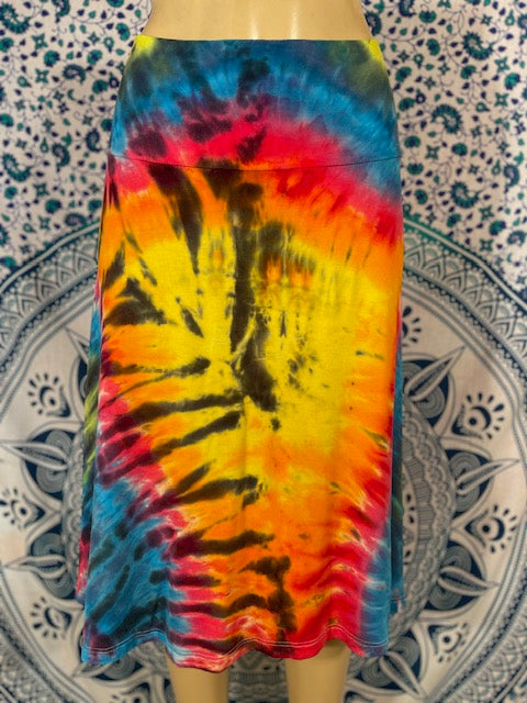 Soft and flowing, feel the wind in the magical cotton - rayon blend skirt. Cut and Sewn in California and tiedyed by the mother/daughter Duo of KKtiedyeCo. of Lodi. California...these skirts are perfect.