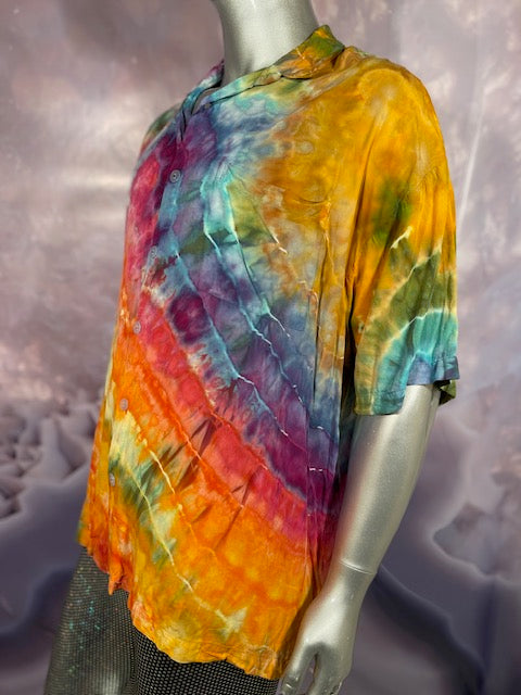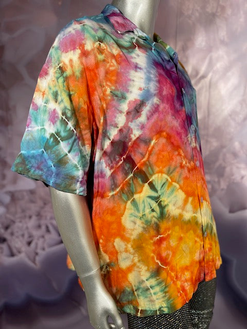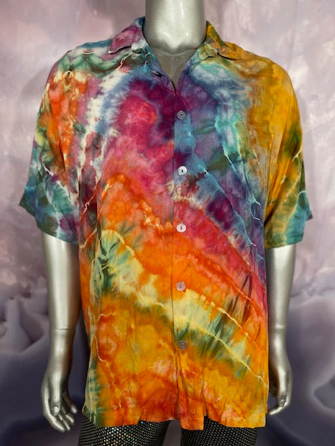 Stay airy and free flowing in this tiedye Button Down...it can also button up...dyed by Tyrannosaurus Dyes aka Brittany from Colorado !