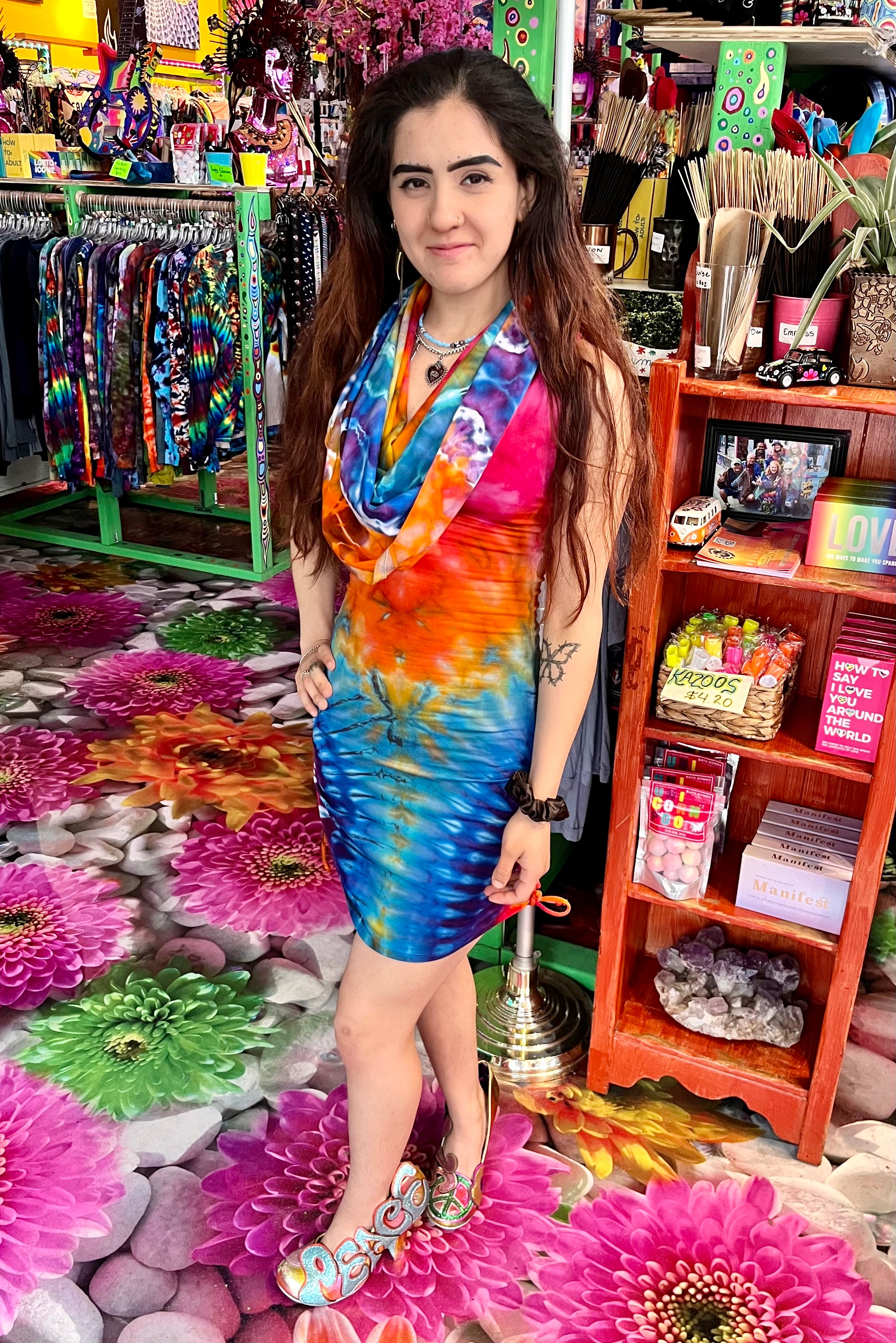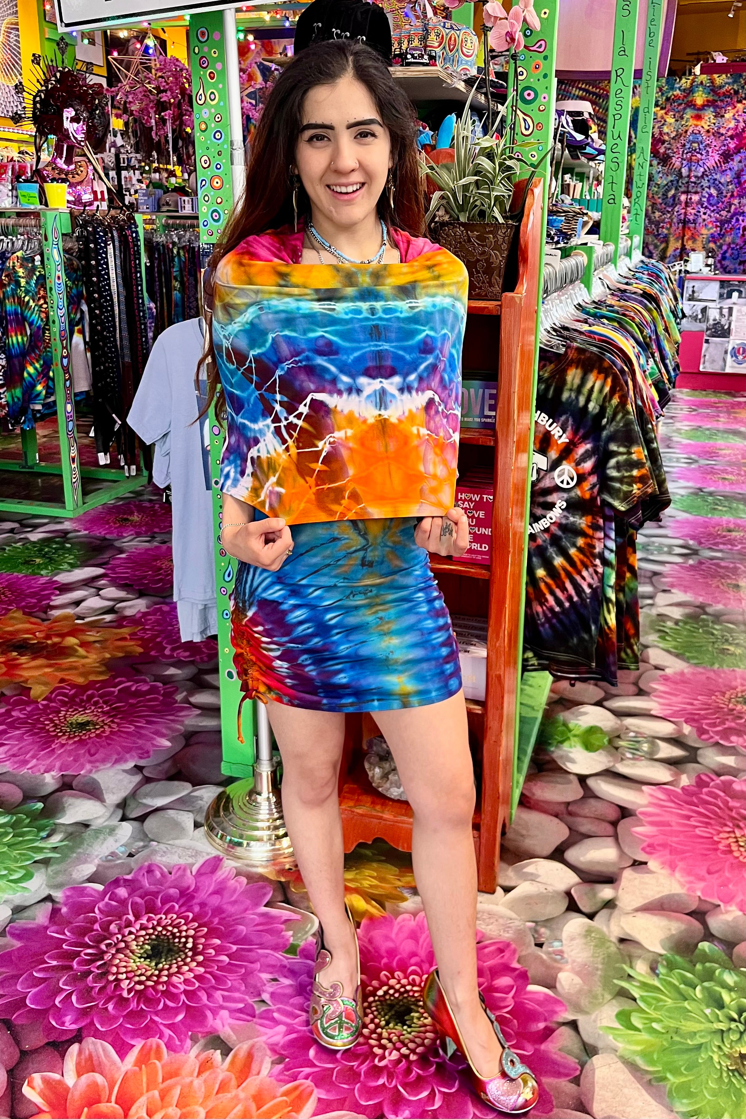 Last quarter we flew Mary Beth Osburn of Marybgoround Dyes in Colorado out to our tiedye studio! She did some collaborations with our in house dye master, Ravan Alexandra...and magic happened...including these dresses!