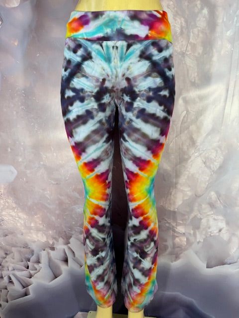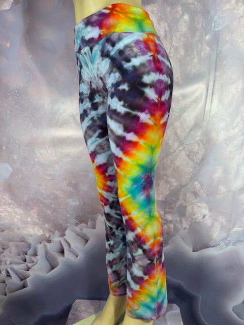 Royal Apparel branded USA made yoga pants with fold over waist. Tiedyed by Brittany of Tyrannosaurus Dyes of Colorado. We LOVE Brittany's tiedye!!! We all go bananas every time we get a box from her in...JUST WOW!