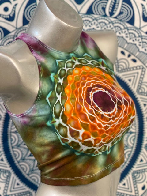 Classic American Apparel Crop tank tie dyed by Mary Beth Osburn out of Colorado. We Love these earthy rainbow AWESOMENESS. They just speak to us!