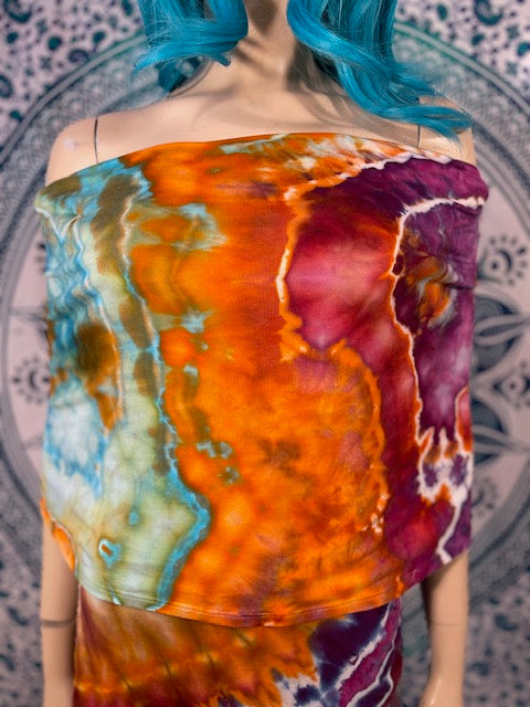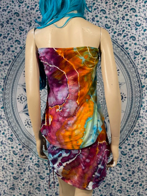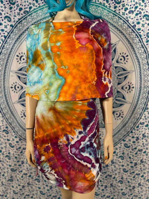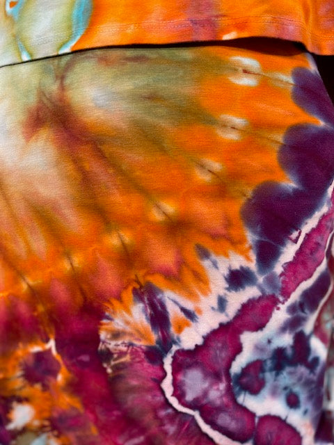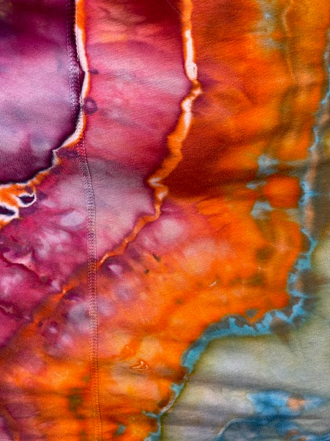 Last quarter we flew Mary Beth Osburn of Marybgoround Dyes in Colorado out to our tiedye studio! She did some collaborations with our in house dye master, Ravan Alexandra...and magic happened...including these dresses!