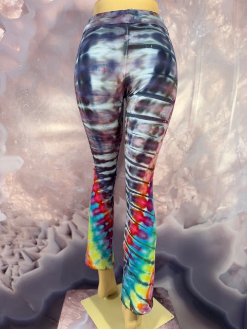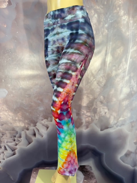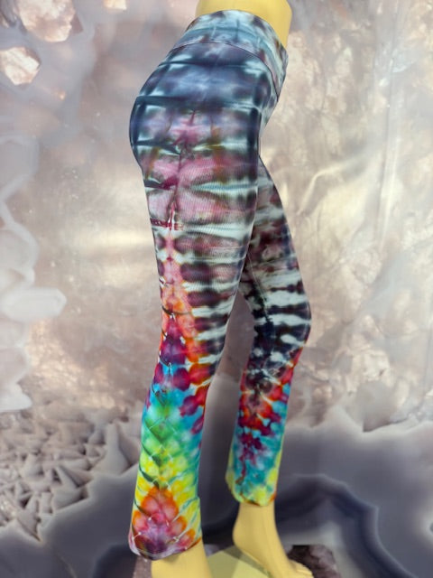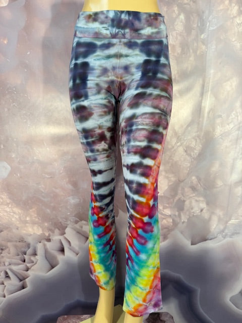 Royal Apparel branded USA made yoga pants with fold over waist. Tiedyed by Brittany of Tyrannosaurus Dyes of Colorado. We LOVE Brittany's tiedye!!! We all go bananas every time we get a box from her in...JUST WOW!