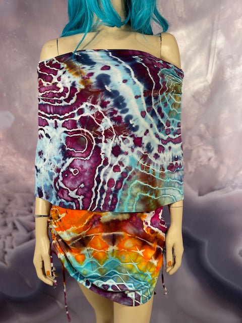 Last quarter we flew Mary Beth Osburn of Marybgoround Dyes in Colorado out to our tiedye studio! She did some collaborations with our in house dye master, Ravan Alexandra...and magic happened...including these dresses!