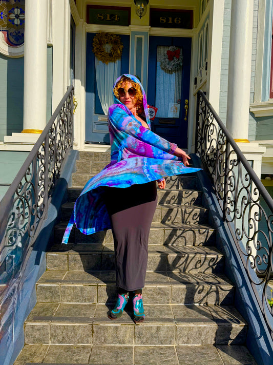 Liquid Dyed by the Amazing Jonathan of BEAN DYES these cloaks have every dye style from HEATERS, HONEYCOMB, KENNEY STYLES, TO WTF KIND OF TIEDYE IS THIS.