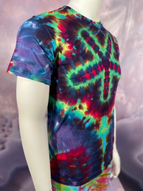 Be the life of the party with this awesome, tie-dye t-shirt! Show off your wild style with thick, vibrant colors, saturated with rainbows that will make everyone around you smile. The best look for any time of day!