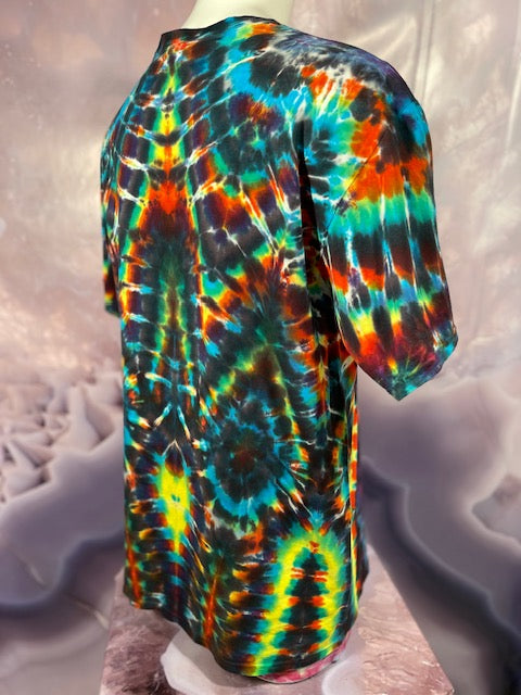 Be the life of the party with this awesome, tie-dye t-shirt! Show off your wild style with thick, vibrant colors, saturated with rainbows that will make everyone around you smile. The best look for any time of day!