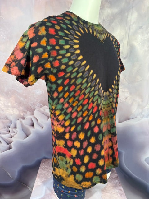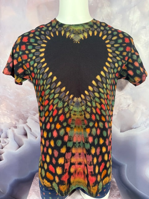 He starts with a black shirt, then bleaches it, then colors it, then ships it to us.  This shirt has traveled far and wide to find you...but here it comes!