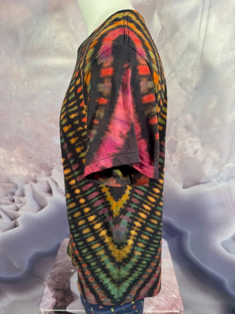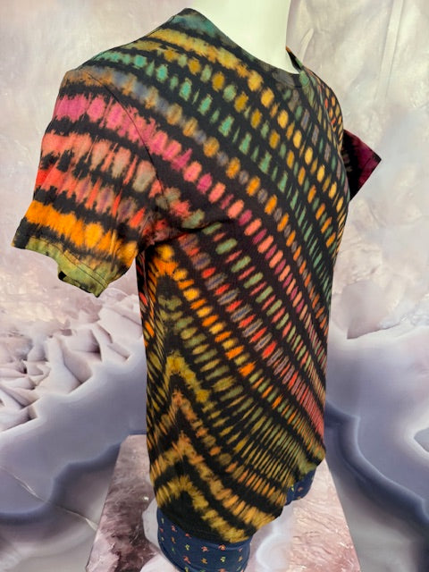 He starts with a black shirt, then bleaches it, then colors it, then ships it to us.  This shirt has traveled far and wide to find you...but here it comes!