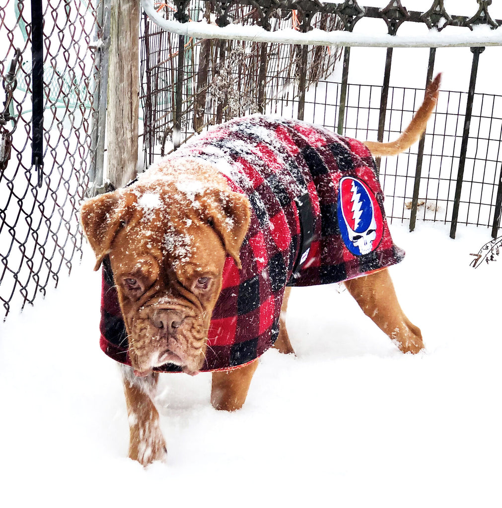 Our officially licensed Grateful Dead themed dog coats are made with super cozy, double-lined polyester fleece to keep your dogs warm and dry in any weather. The easy on/off design allows you to slip it over the head and quickly attach the army grade, 2-inch-wide nylon belting around the belly. A sturdy strip of Velcro ensures that the coat will stay on and stay in place while your dog runs, romps, or even curls up for a nap. Oh, and you can toss it in the washer and dryer over and over. Your best friend will be so comfy in this fleece, he or she won’t want to wear anything else.