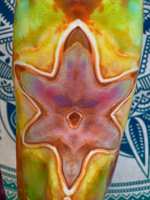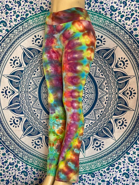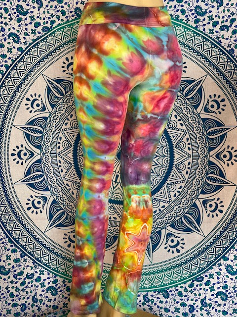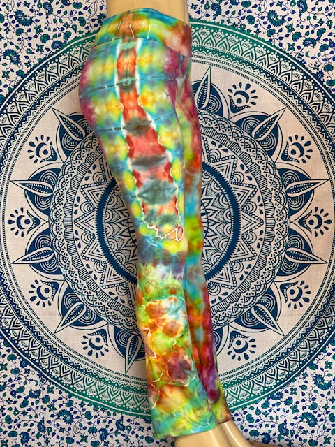 Royal Apparel branded USA made yoga pants with fold over waist.  Tiedyed by Chuck Brines aka Corn Dog Dyes...these are so good that you don't even need condiments!