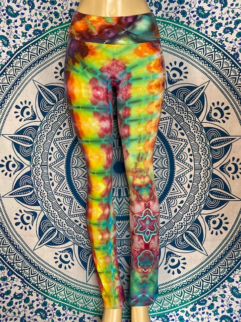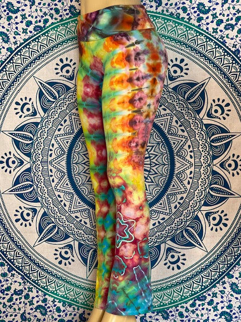 Royal Apparel branded USA made yoga pants with fold over waist. Tiedyed by Chuck Brines aka Corn Dog Dyes...these are so good that you don't even need condiments!