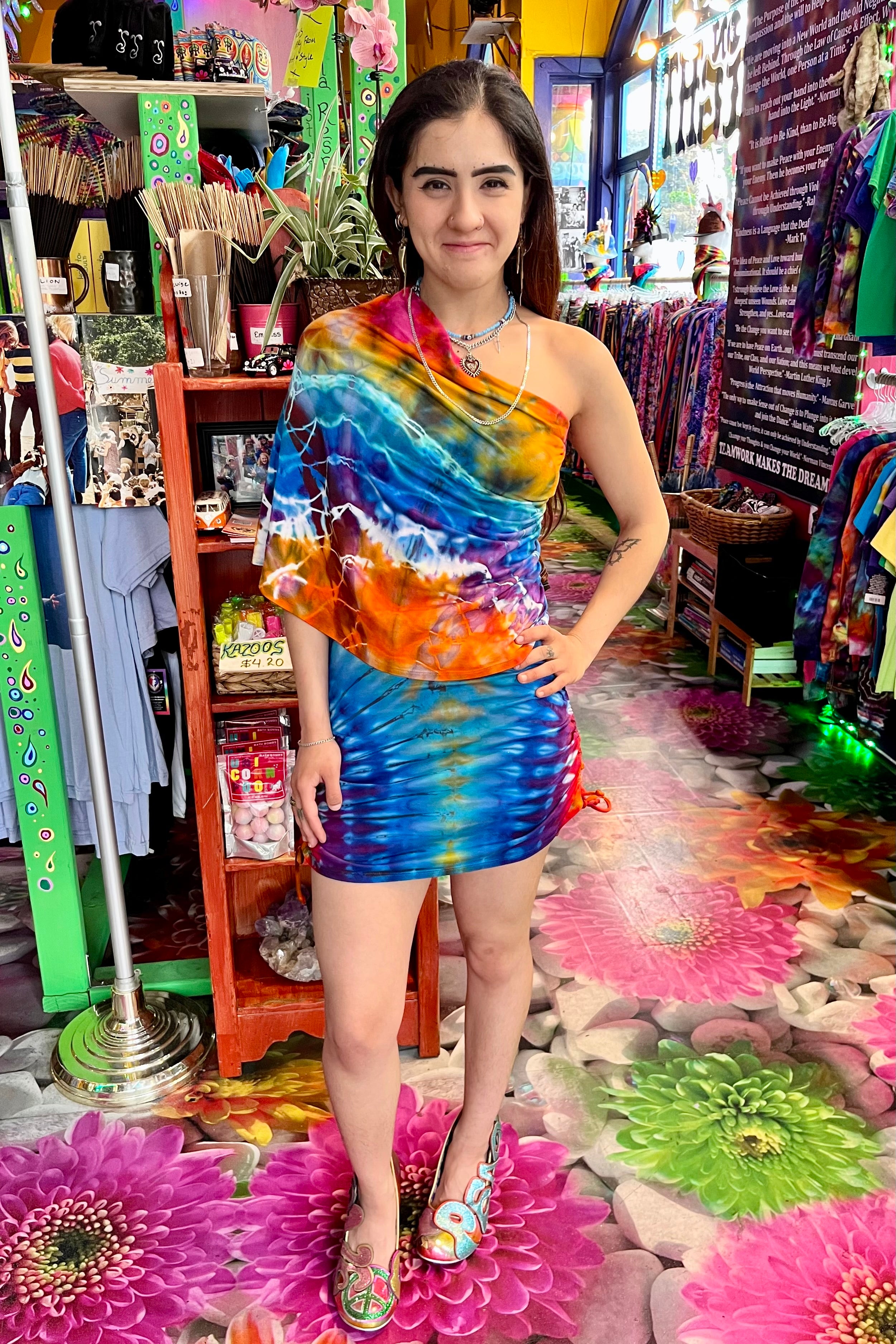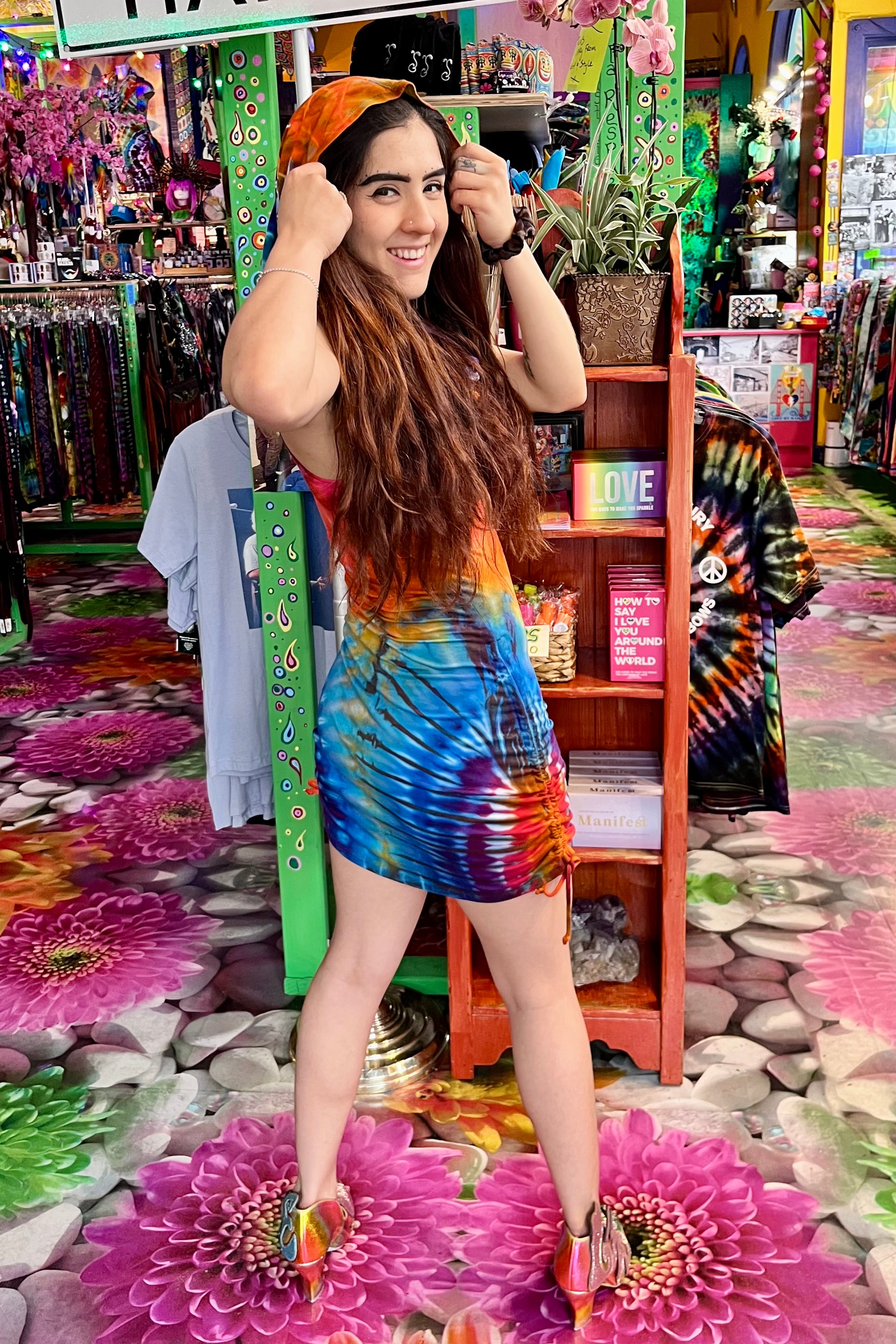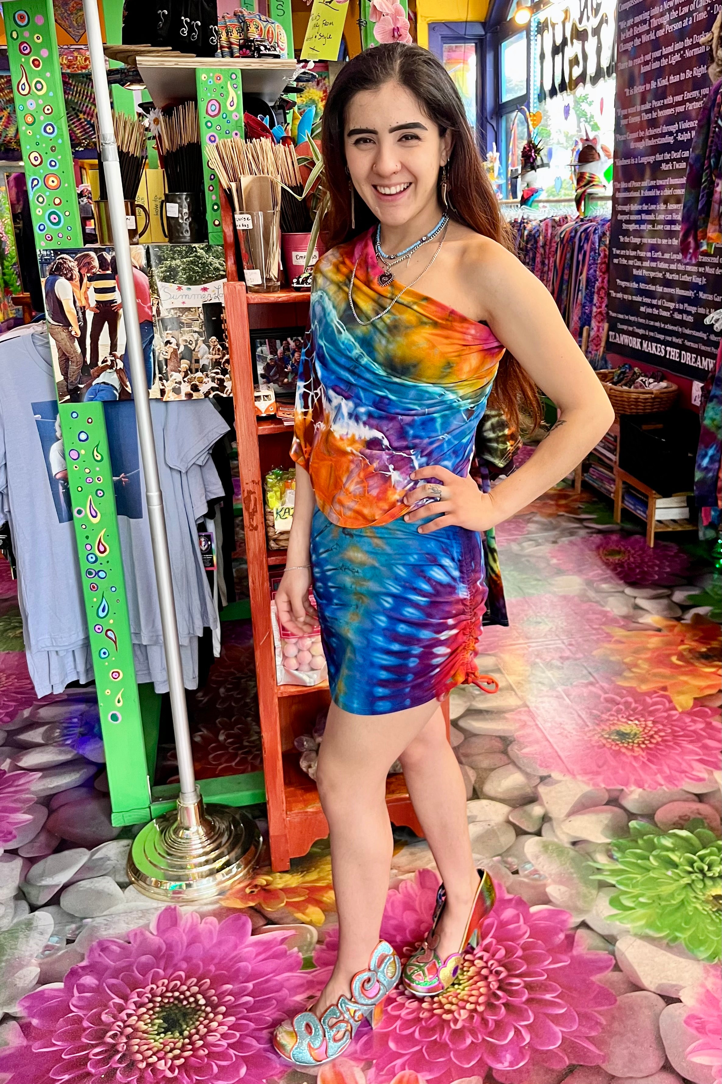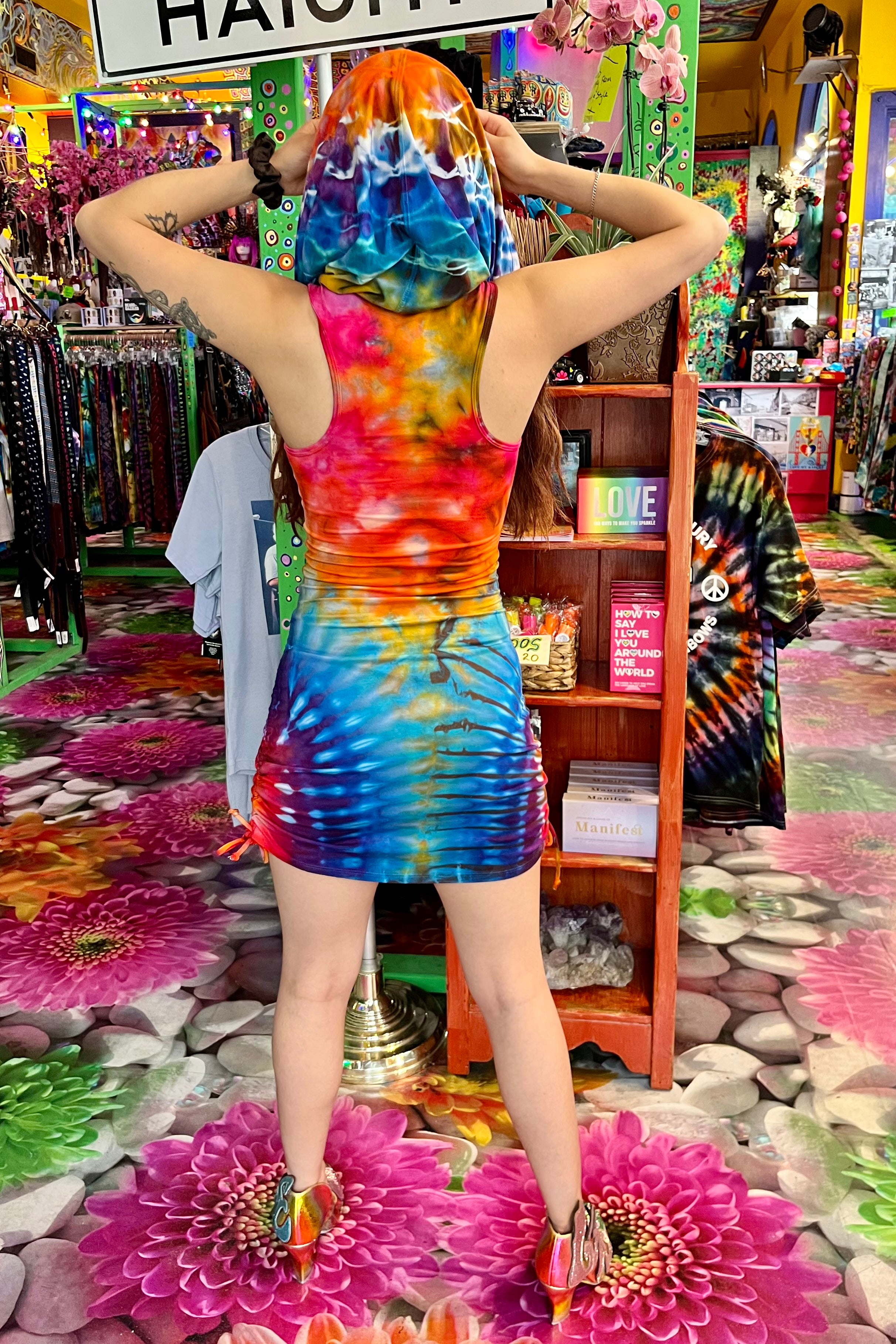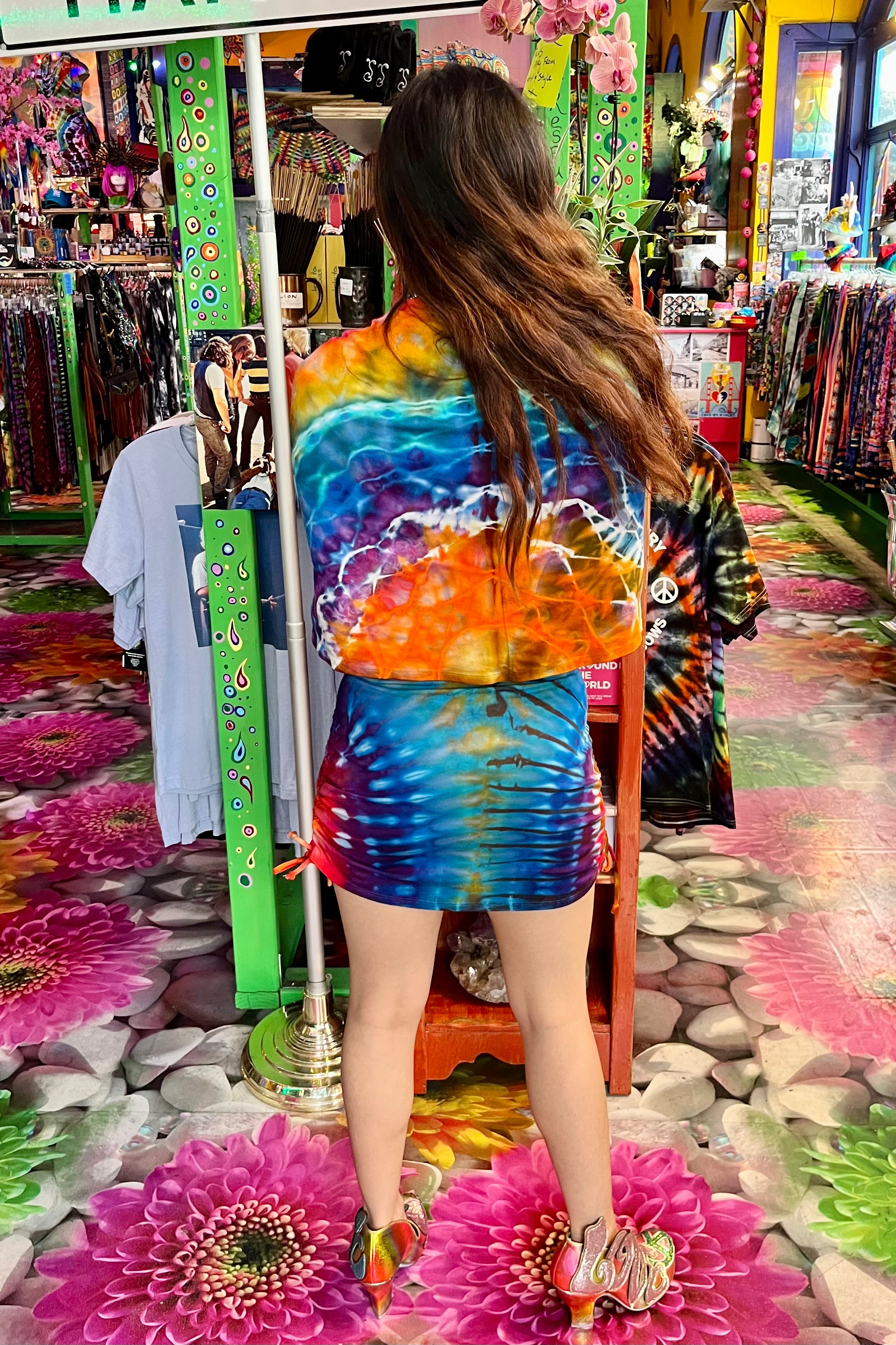 Last quarter we flew Mary Beth Osburn of Marybgoround Dyes in Colorado out to our tiedye studio! She did some collaborations with our in house dye master, Ravan Alexandra...and magic happened...including these dresses!
