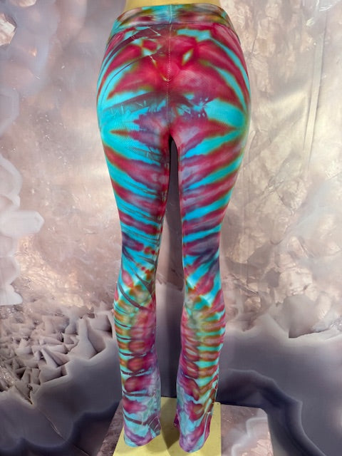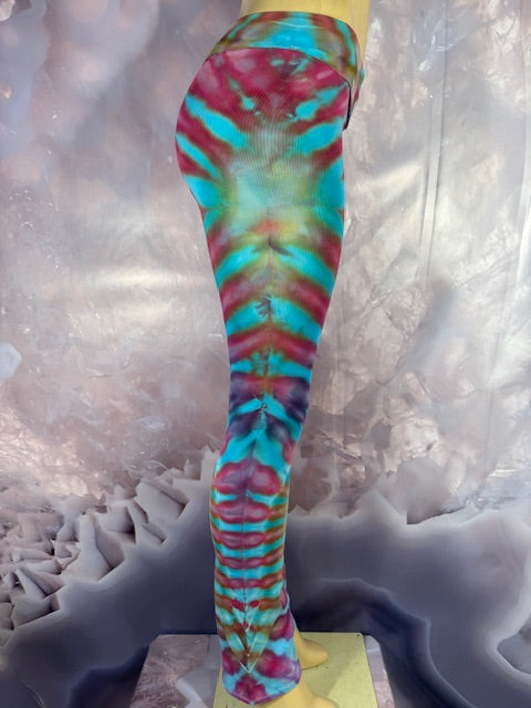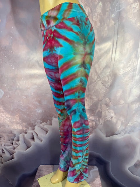 Royal Apparel branded USA made yoga pants with fold over waist.  Tiedyed by Brittany of Tyrannosaurus Dyes of Colorado.  We LOVE Brittany's tiedye!!!  We all go bananas every time we get a box from her in...JUST WOW!