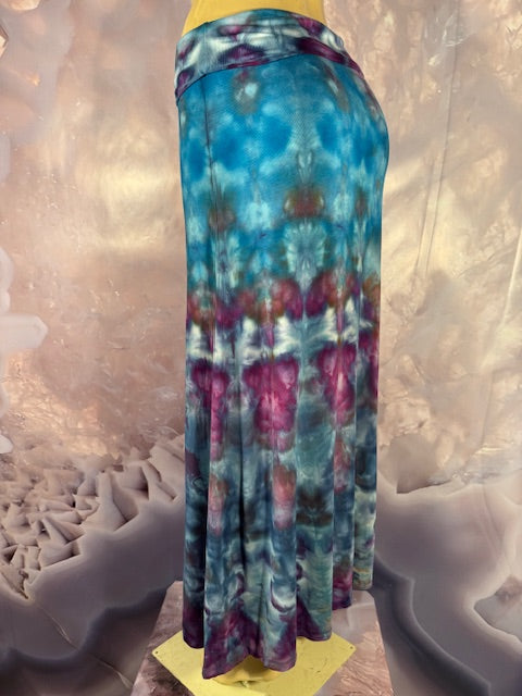Soft and flowing, feel the wind in the magical cotton - rayon/ cotton blend skirt. Cut and Sewn in California and tiedyed by Misty Morning of San Rafael.