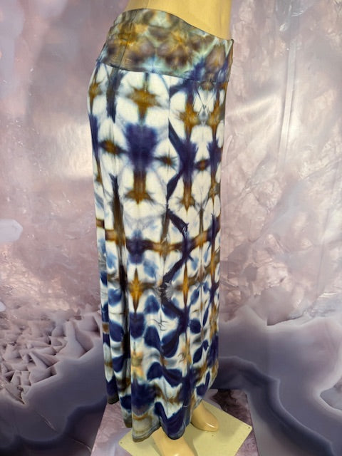 Soft and flowing, feel the wind in the magical cotton - rayon/ cotton blend skirt. Cut and Sewn in California and tiedyed by Misty Morning of San Rafael.