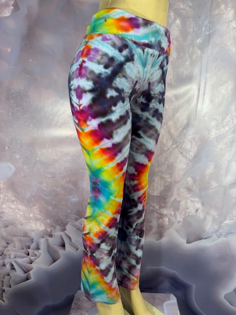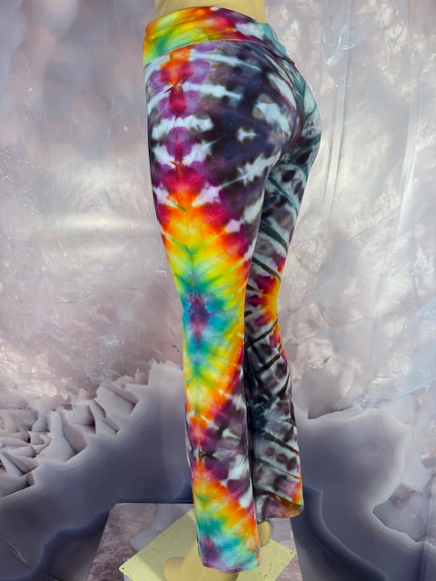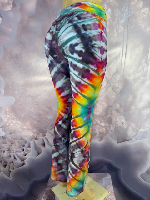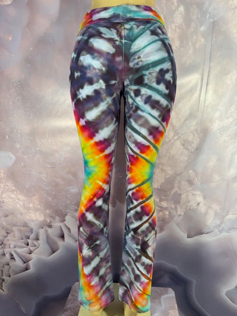 Royal Apparel branded USA made yoga pants with fold over waist. Tiedyed by Brittany of Tyrannosaurus Dyes of Colorado. We LOVE Brittany's tiedye!!! We all go bananas every time we get a box from her in...JUST WOW!