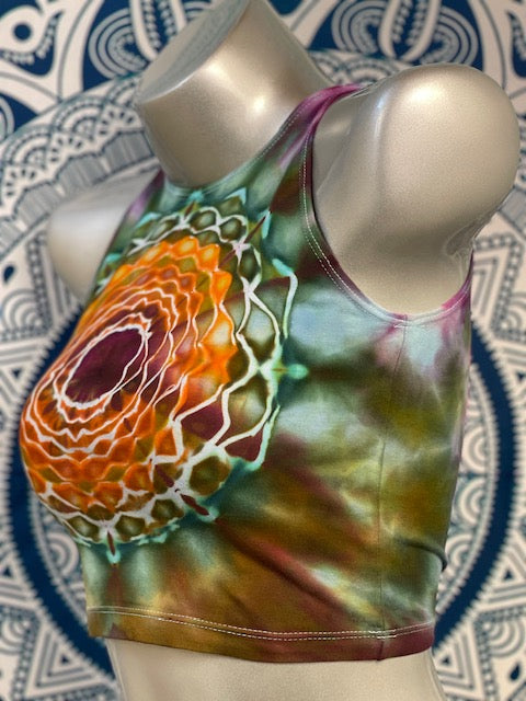Classic American Apparel Crop tank tie dyed by Mary Beth Osburn out of Colorado. We Love these earthy rainbow AWESOMENESS. They just speak to us!