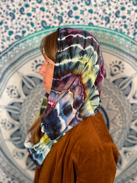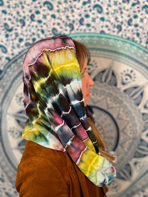These may be worn as a circular scarf, as a hood, or even slip your arms through and have it be a cover!