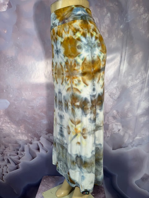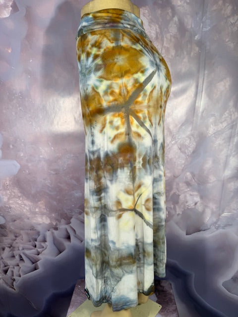 Soft and flowing, feel the wind in the magical cotton - rayon/ cotton blend skirt. Cut and Sewn in California and tiedyed by Misty Morning of San Rafael.