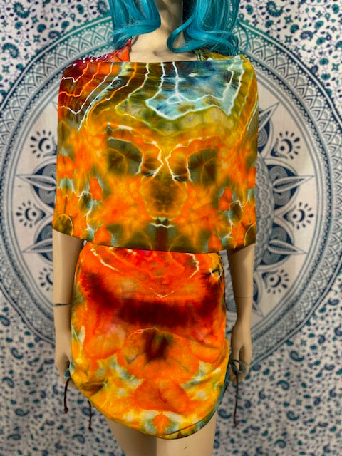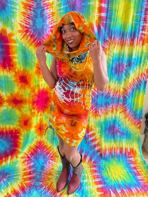 Last quarter we flew Mary Beth Osburn of Marybgoround Dyes in Colorado out to our tiedye studio! She did some collaborations with our in house dye master, Ravan Alexandra...and magic happened...including these dresses!