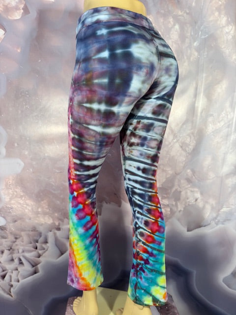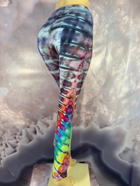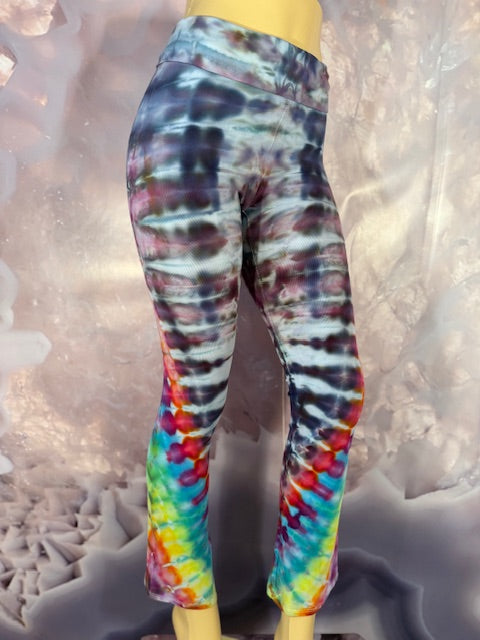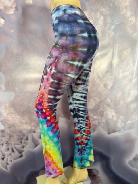Royal Apparel branded USA made yoga pants with fold over waist. Tiedyed by Brittany of Tyrannosaurus Dyes of Colorado. We LOVE Brittany's tiedye!!! We all go bananas every time we get a box from her in...JUST WOW!
