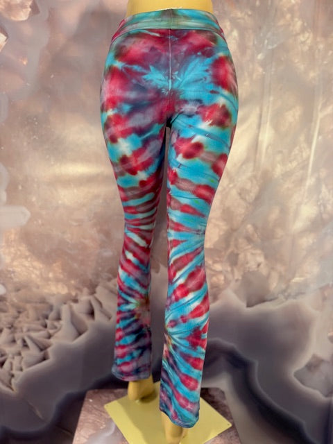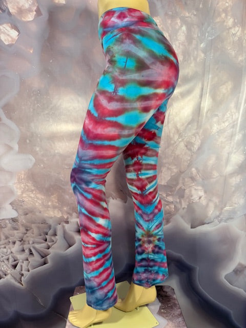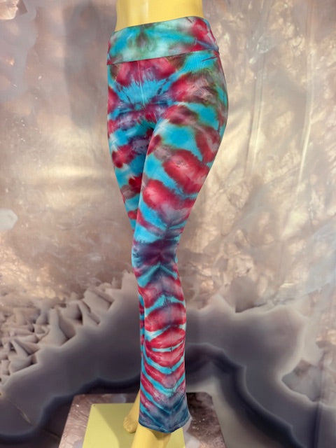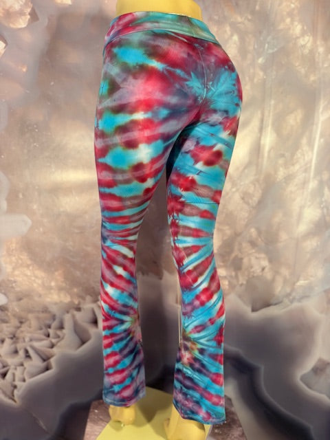 Royal Apparel branded USA made yoga pants with fold over waist. Tiedyed by Brittany of Tyrannosaurus Dyes of Colorado. We LOVE Brittany's tiedye!!! We all go bananas every time we get a box from her in...JUST WOW!