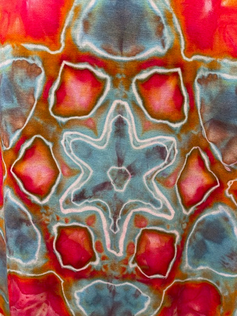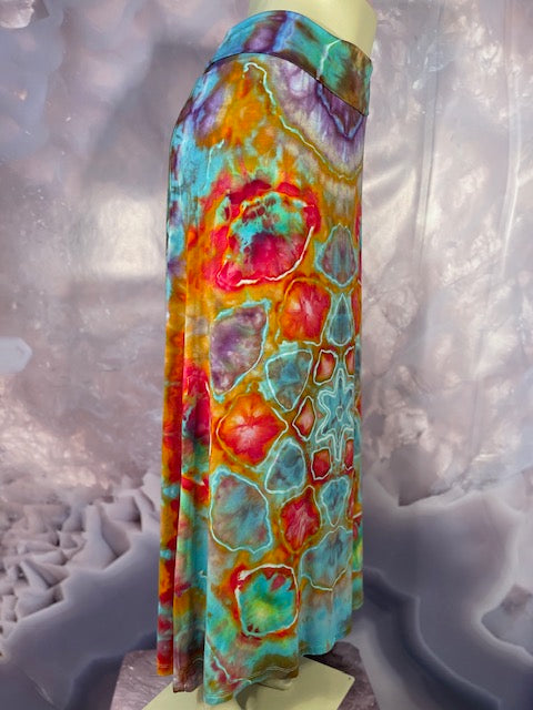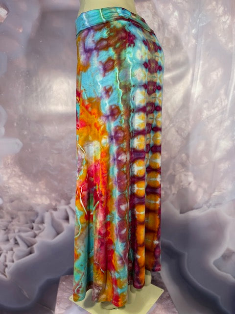 Soft and flowing, feel the wind in the magical cotton - rayon/ cotton blend skirt. Cut and Sewn in California and tiedyed by one of fav tiedye artists...CORNDOG aka Chuck Brine.  We love CornDog's whismical dyes.