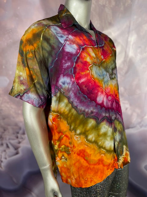 Stay airy and free flowing in this tiedye Button Down...it can also button up...dyed by Marybgorund aka Mary Beth Osburn from Colorado !