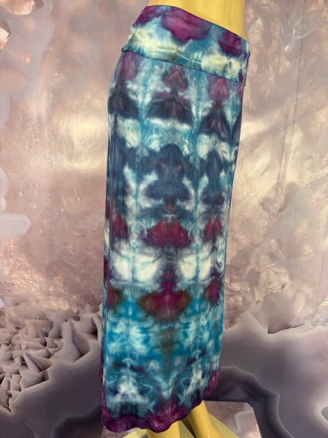 Soft and flowing, feel the wind in the magical cotton - rayon/ cotton blend skirt. Cut and Sewn in California and tiedyed by Misty Morning of San Rafael.