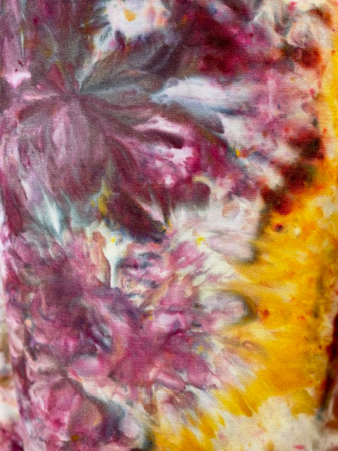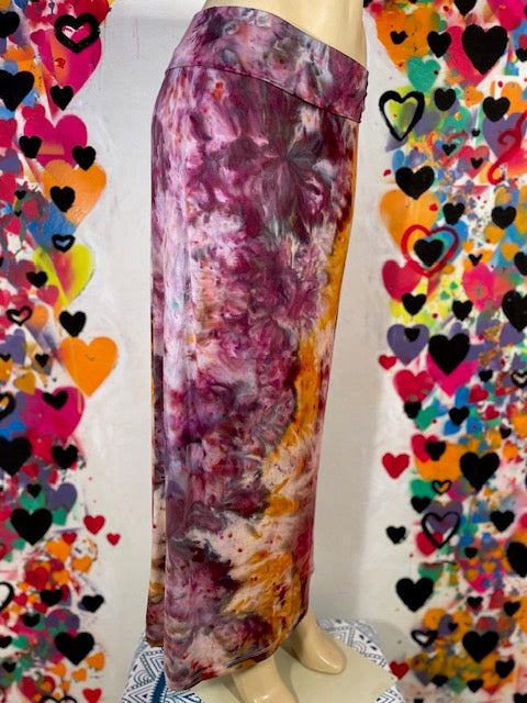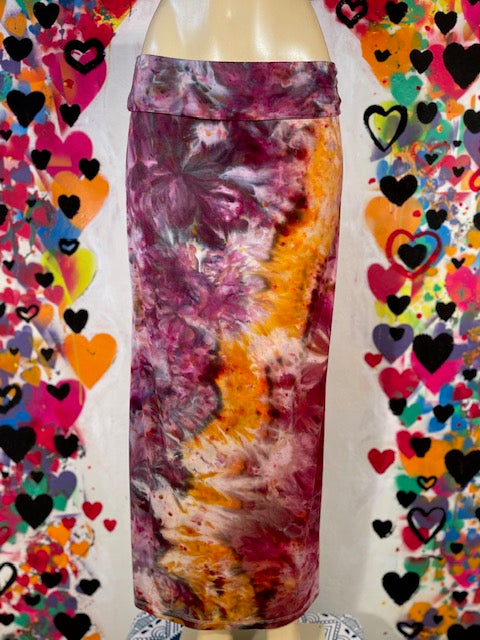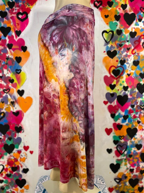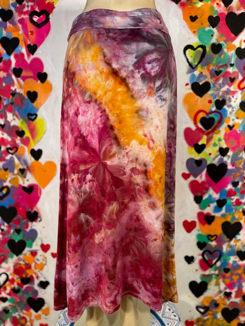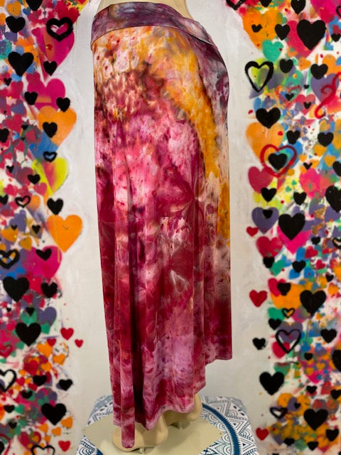 Soft and flowing, feel the wind in the magical cotton - rayon/ cotton blend skirt. Cut and Sewn in California and tiedyed by Misty Morning of San Rafael.