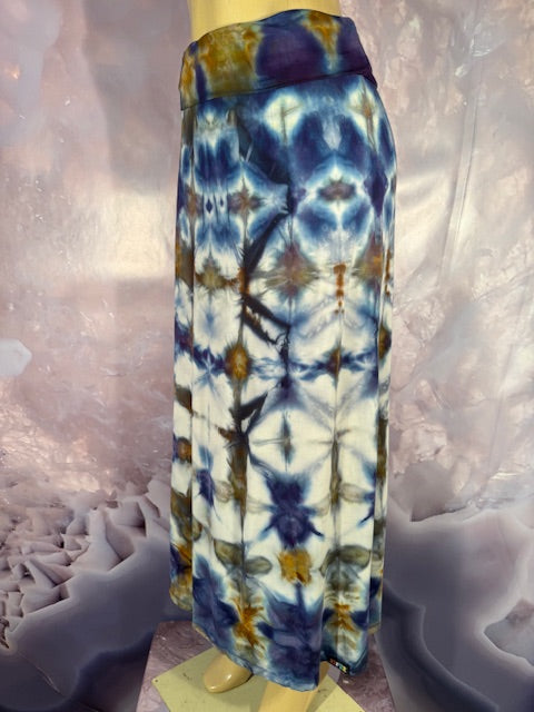 Soft and flowing, feel the wind in the magical cotton - rayon/ cotton blend skirt. Cut and Sewn in California and tiedyed by Misty Morning of San Rafael.