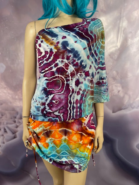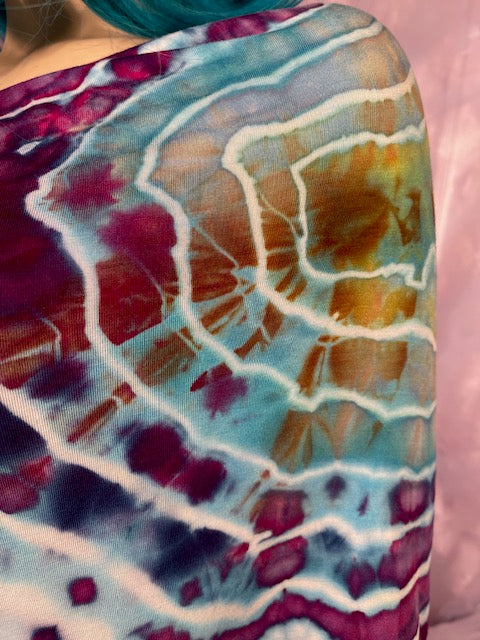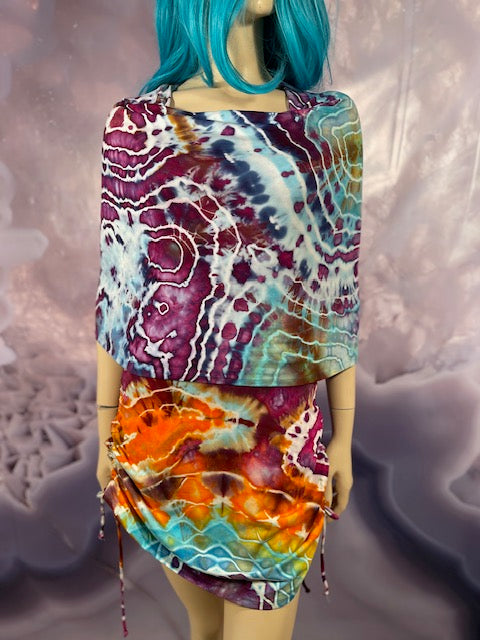 Last quarter we flew Mary Beth Osburn of Marybgoround Dyes in Colorado out to our tiedye studio! She did some collaborations with our in house dye master, Ravan Alexandra...and magic happened...including these dresses!